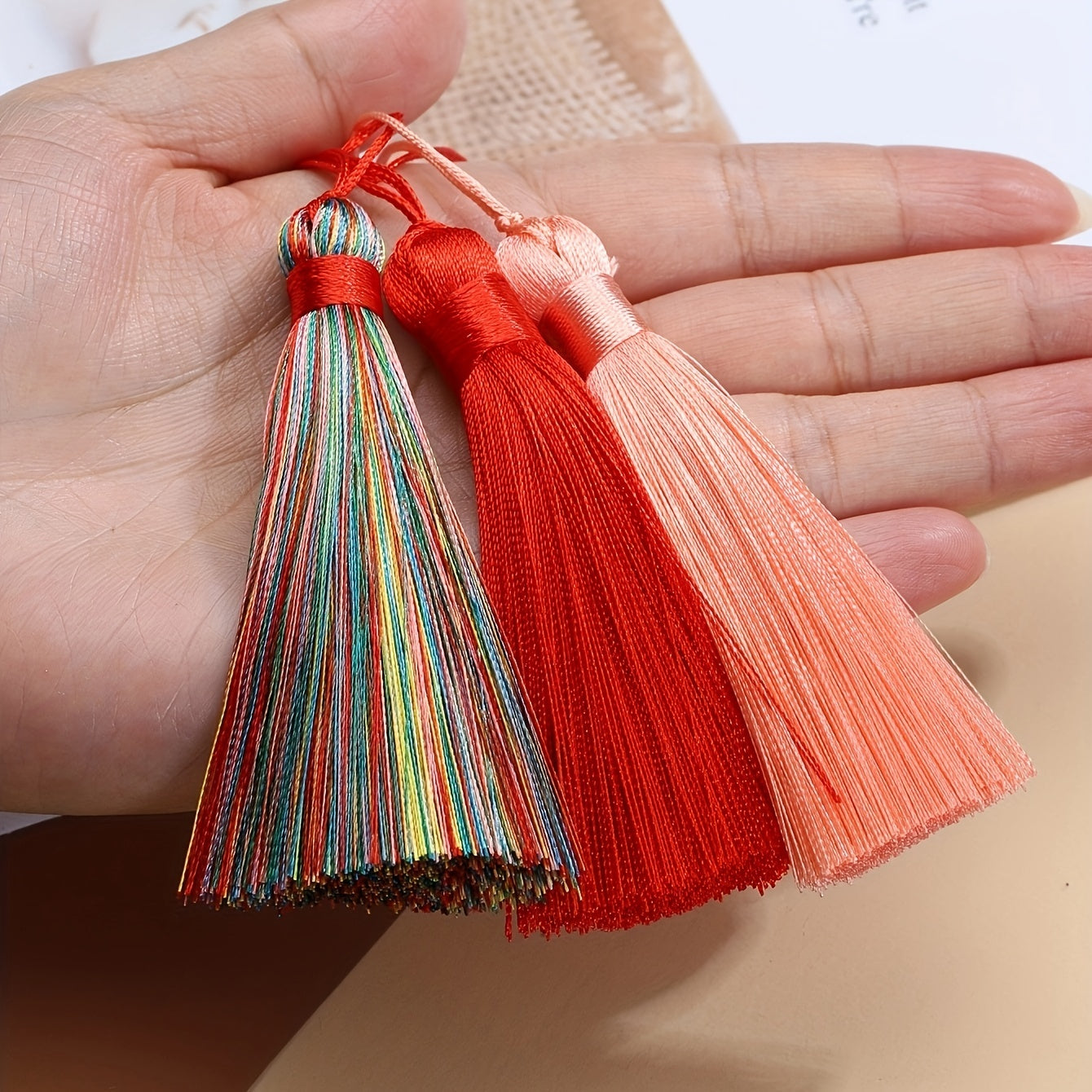 These tassel fringe trims are perfect for adding a decorative touch to your jewelry making projects. Made of silk satin, these 3.15-inch tassels are ideal for creating stylish and unique designs. Use them to embellish necklaces, bracelets, earrings, and more. The vibrant colors and soft texture will enhance the overall look of your creations.