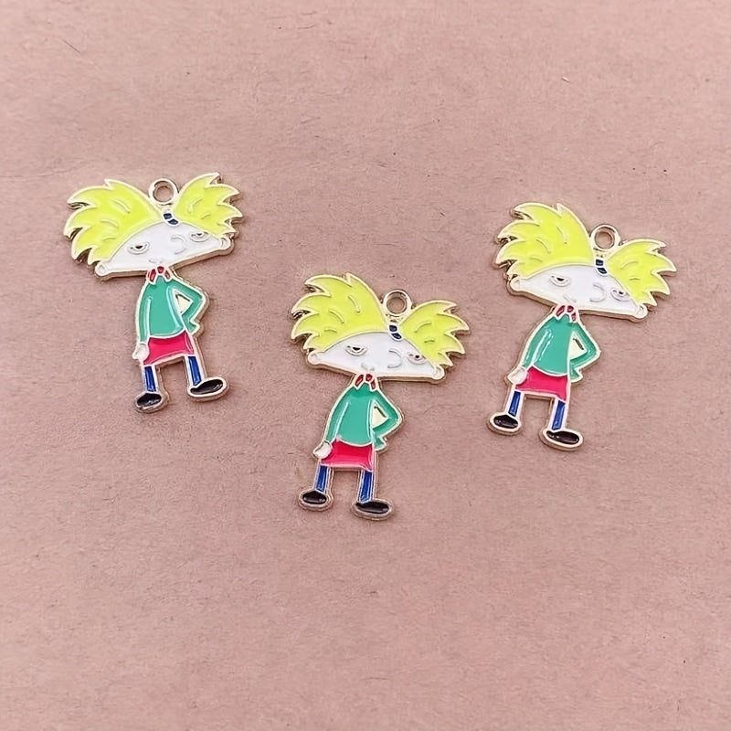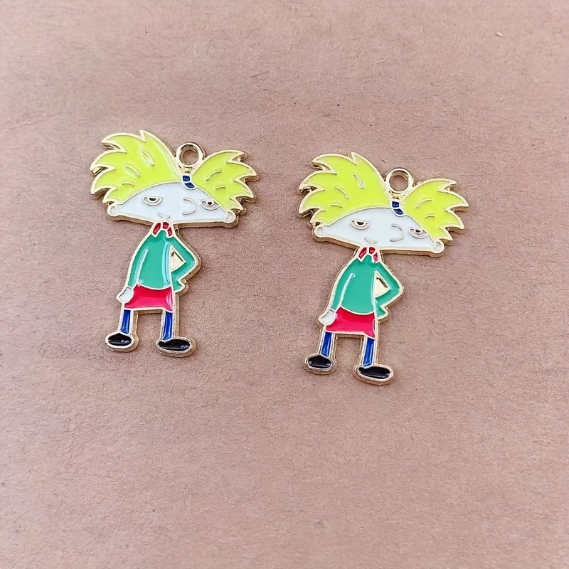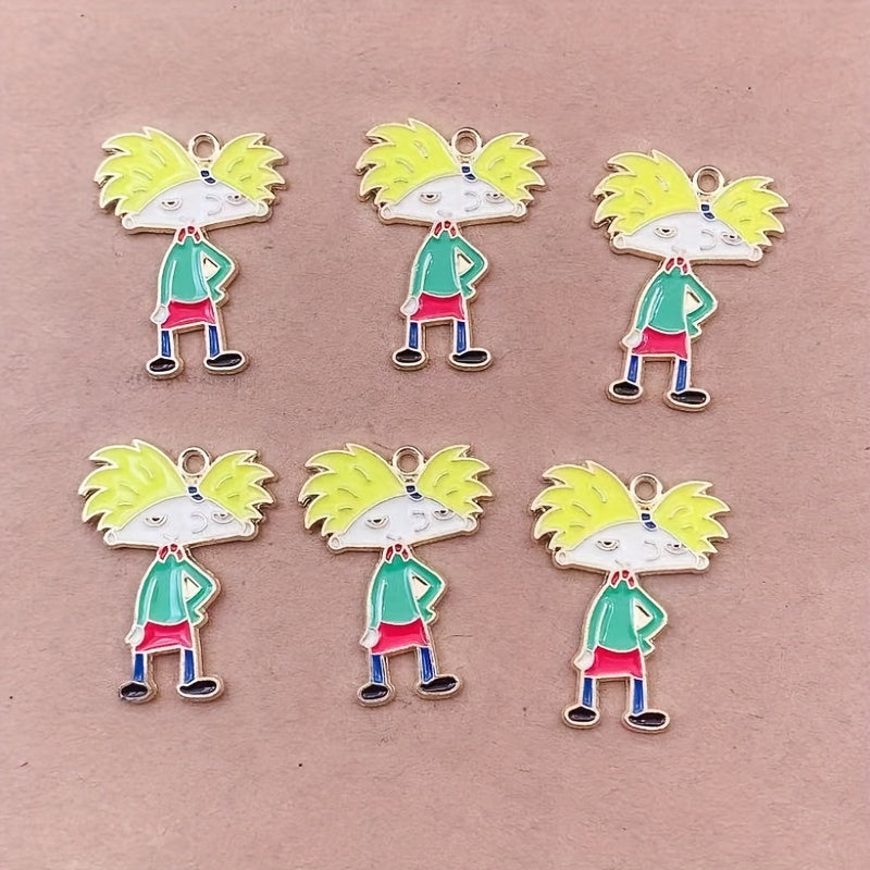 This set includes 10 enamel cartoon boy pendants, ideal for creating earrings, bracelets, necklaces, and other accessories. Made of durable alloy material with a golden hair design.