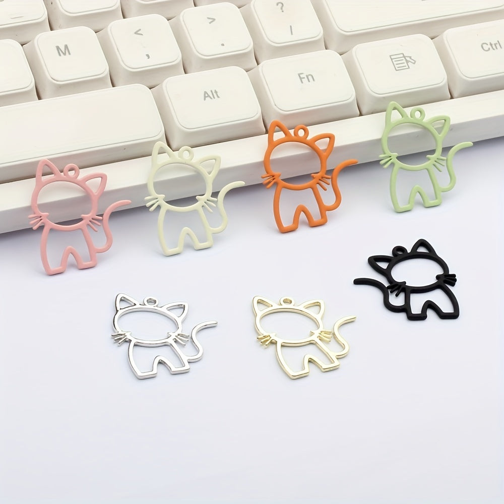 Add a playful touch to your DIY projects with these colorful hollow cartoon cat alloy pendants. Perfect for earrings, bracelets, necklaces, and more!