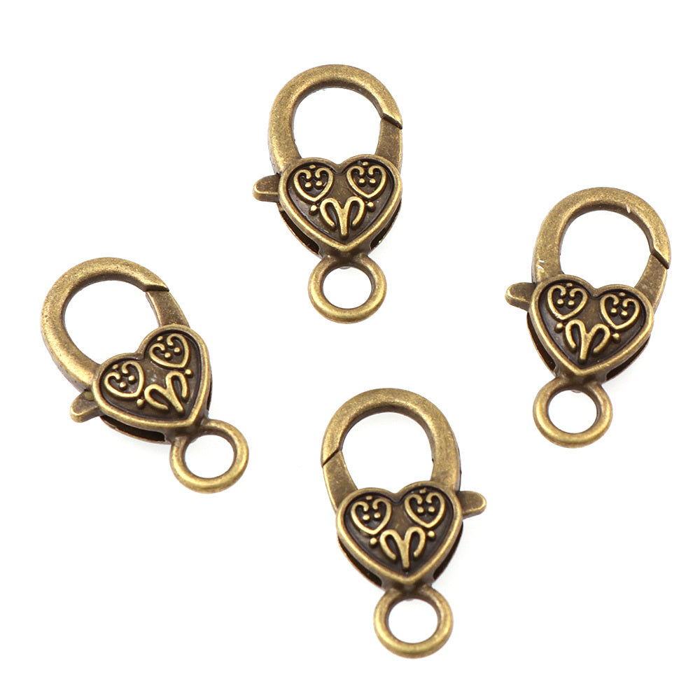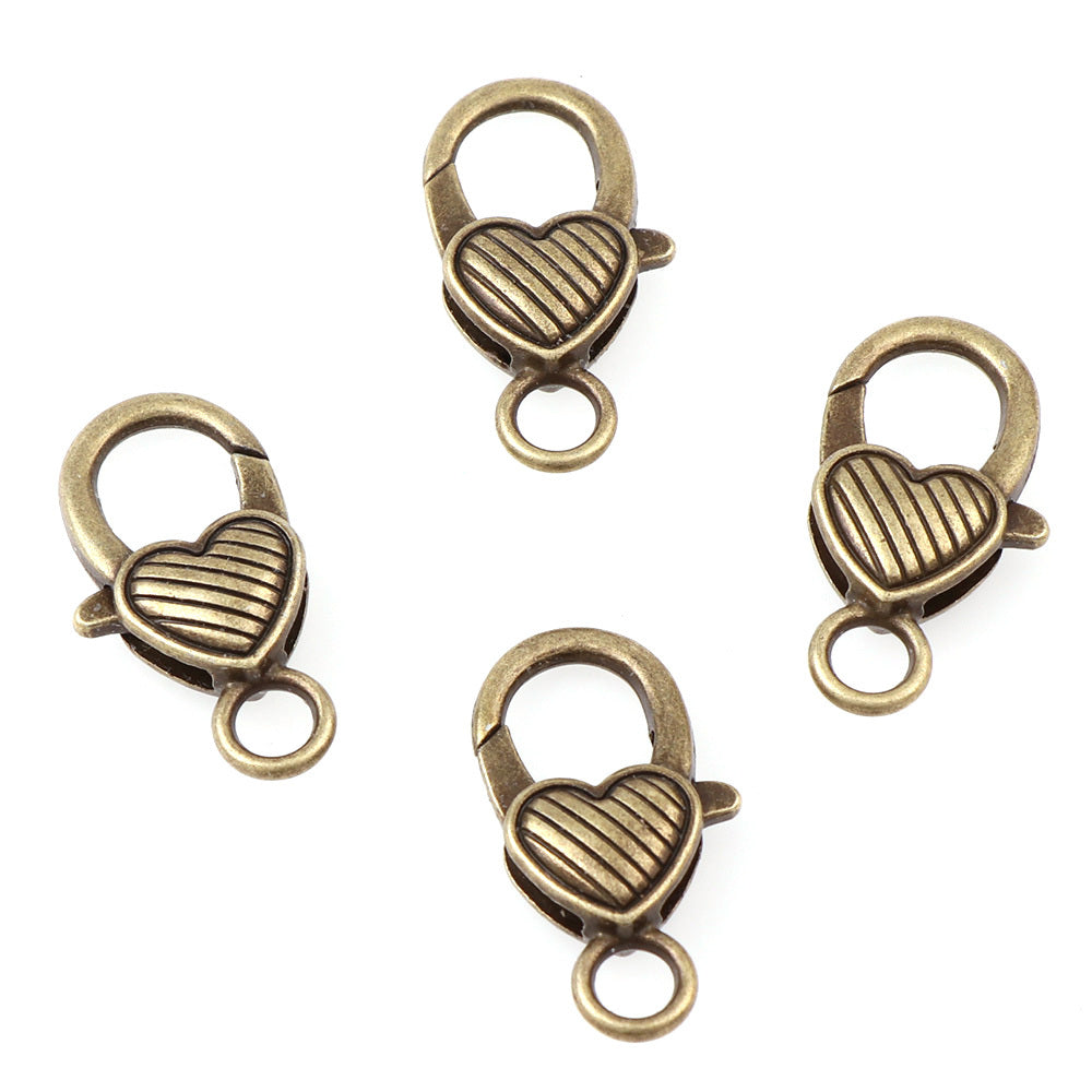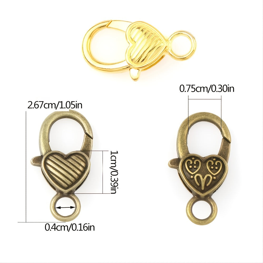 This pack includes 10 heart-shaped lobster clasps, ideal for creating unique jewelry pieces. Made of durable metal, these clasps are perfect for bracelets, necklaces, and other accessories.