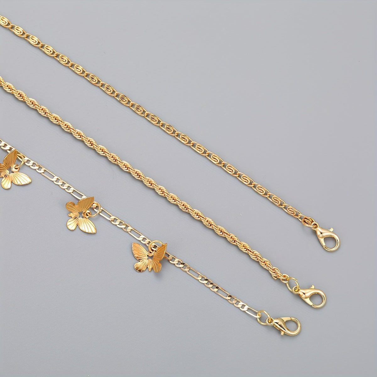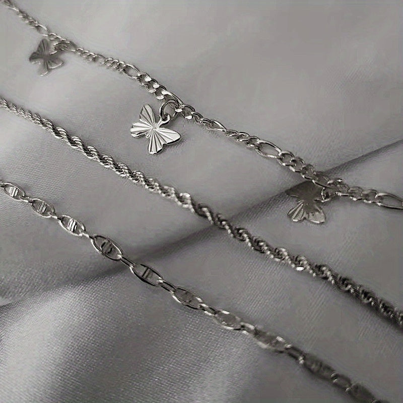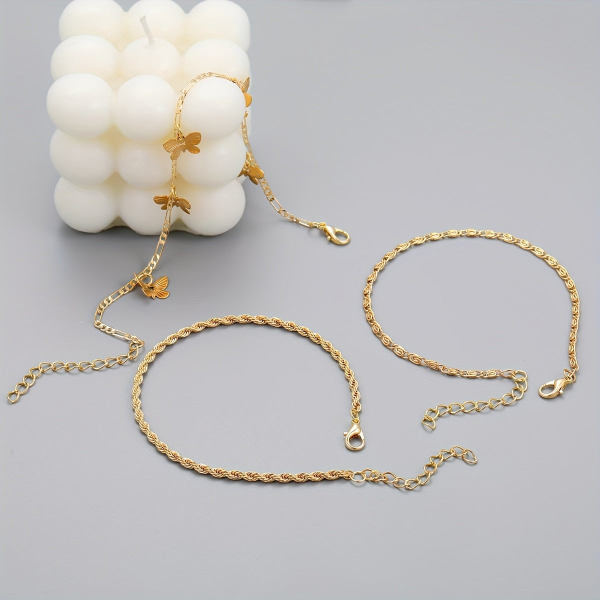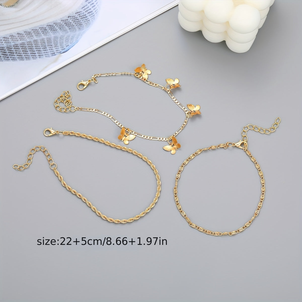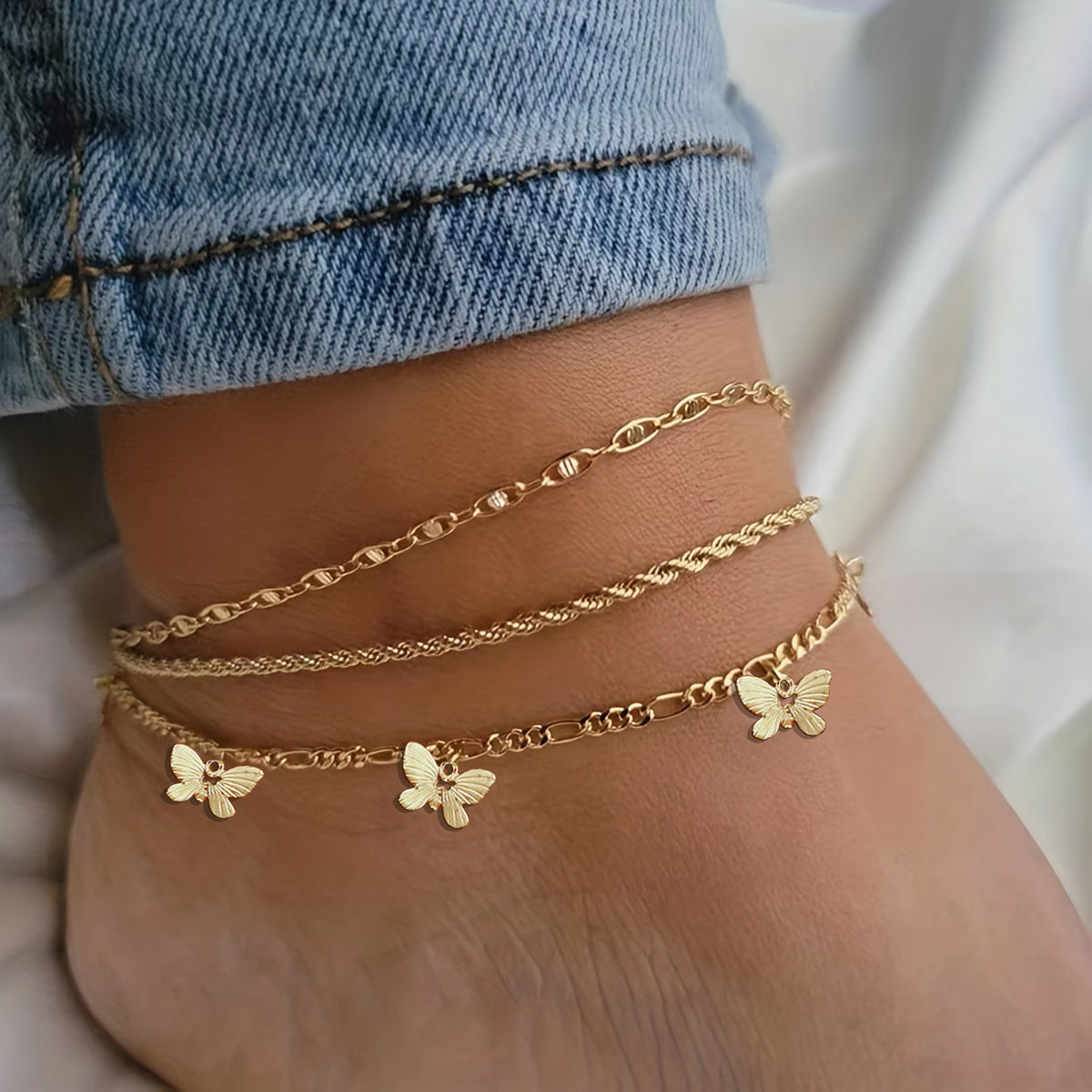 Elevate your beach look with this set of 3 butterfly charm anklets. Perfect for a day out in the sun or a beach party.