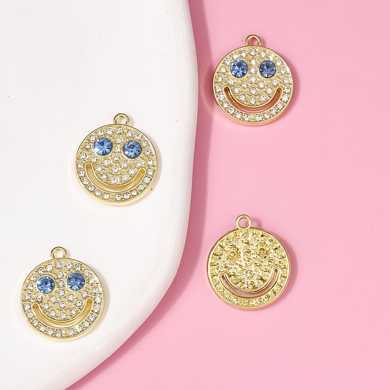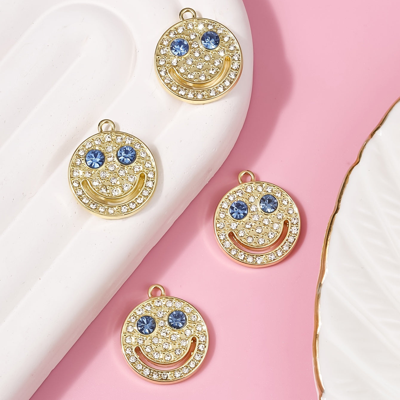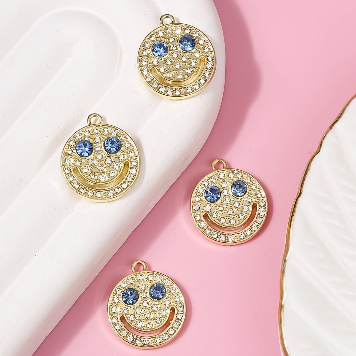 Enhance your style with this fashionable set of 4 diamond-encrusted smiley accessories. These chic pieces are perfect for adding a touch of sparkle to any outfit.