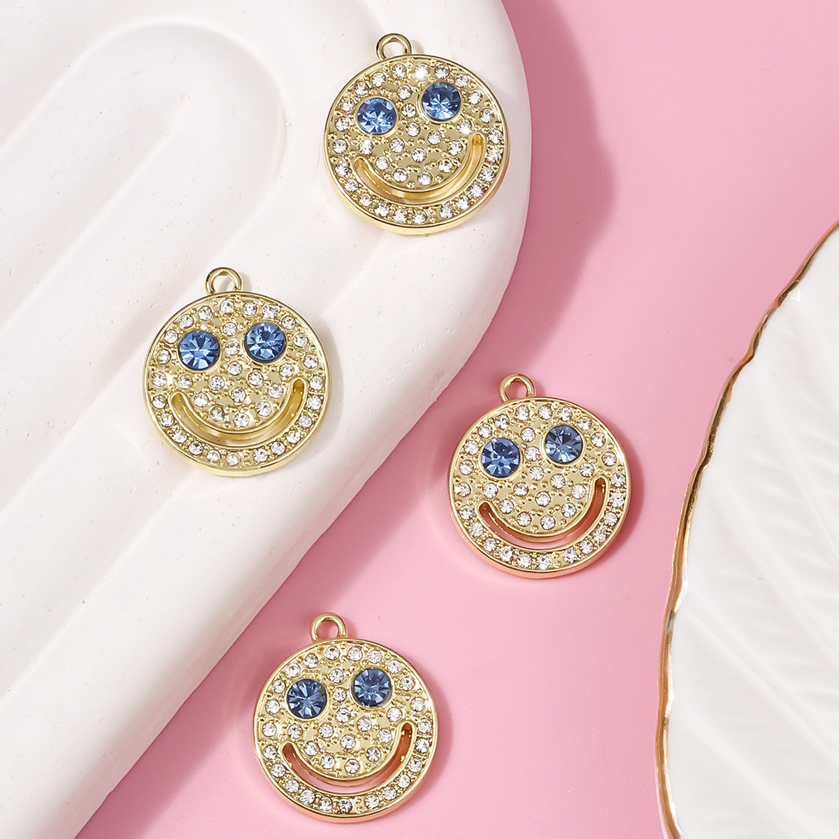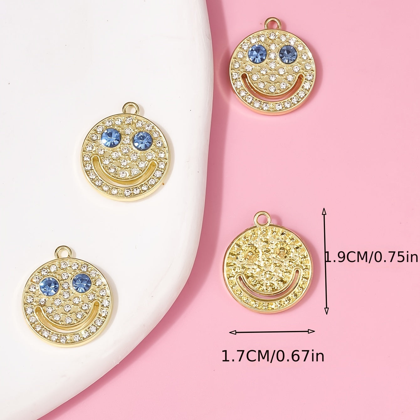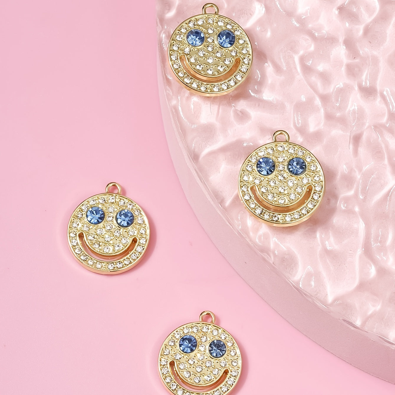 Enhance your style with this fashionable set of 4 diamond-encrusted smiley accessories. These chic pieces are perfect for adding a touch of sparkle to any outfit.