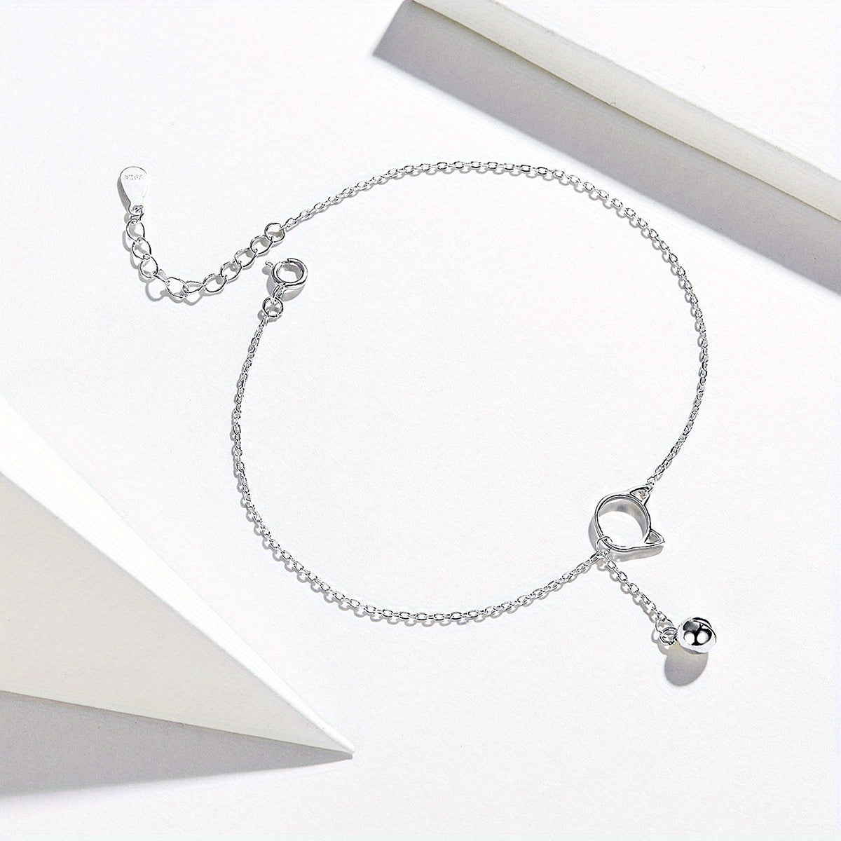 A lovely 925 sterling silver anklet featuring a cute kitten bell design. Perfect gift for women who love animals.