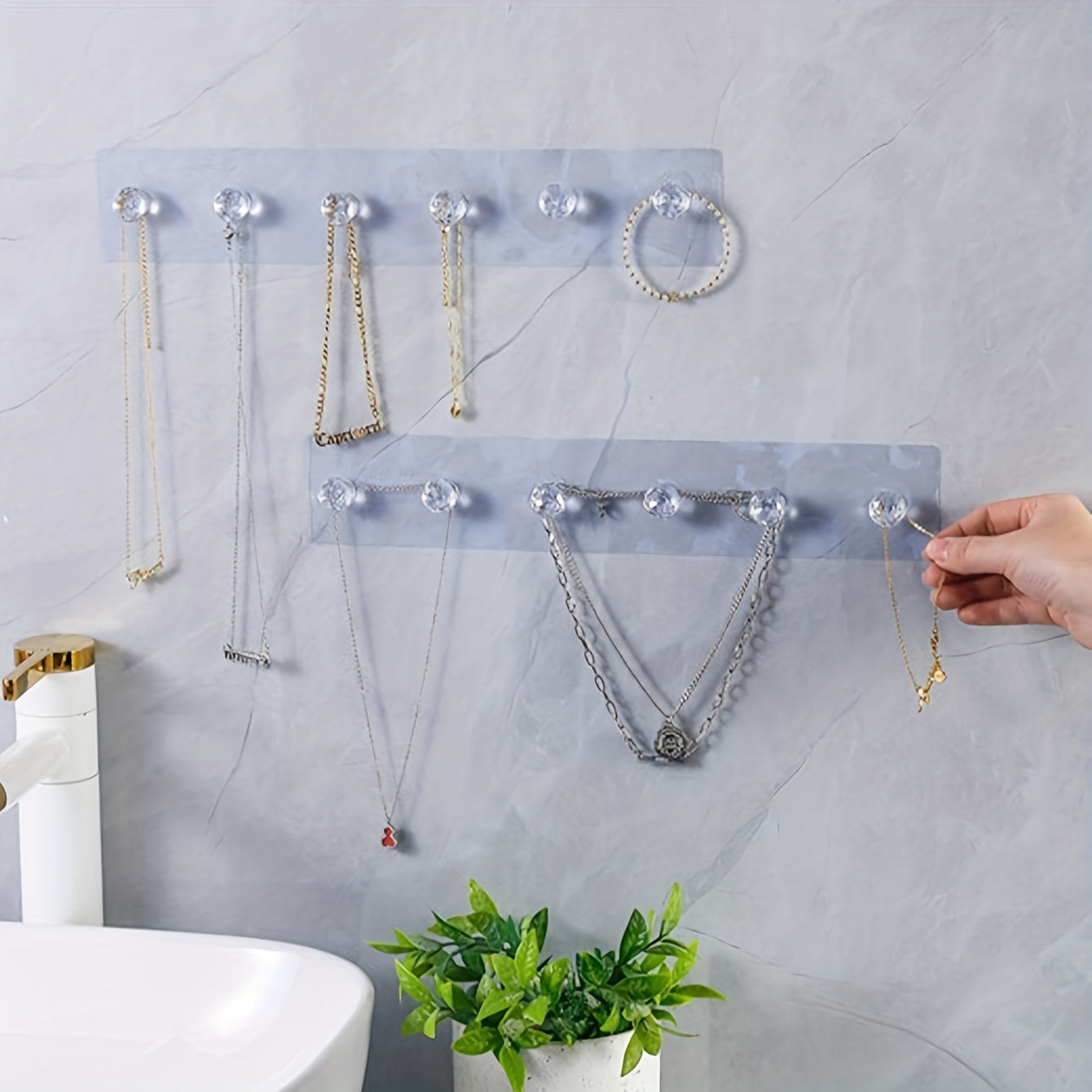 This transparent jewelry storage hook is made of modern plastic material and does not require perforation for installation. It is suitable for home use.