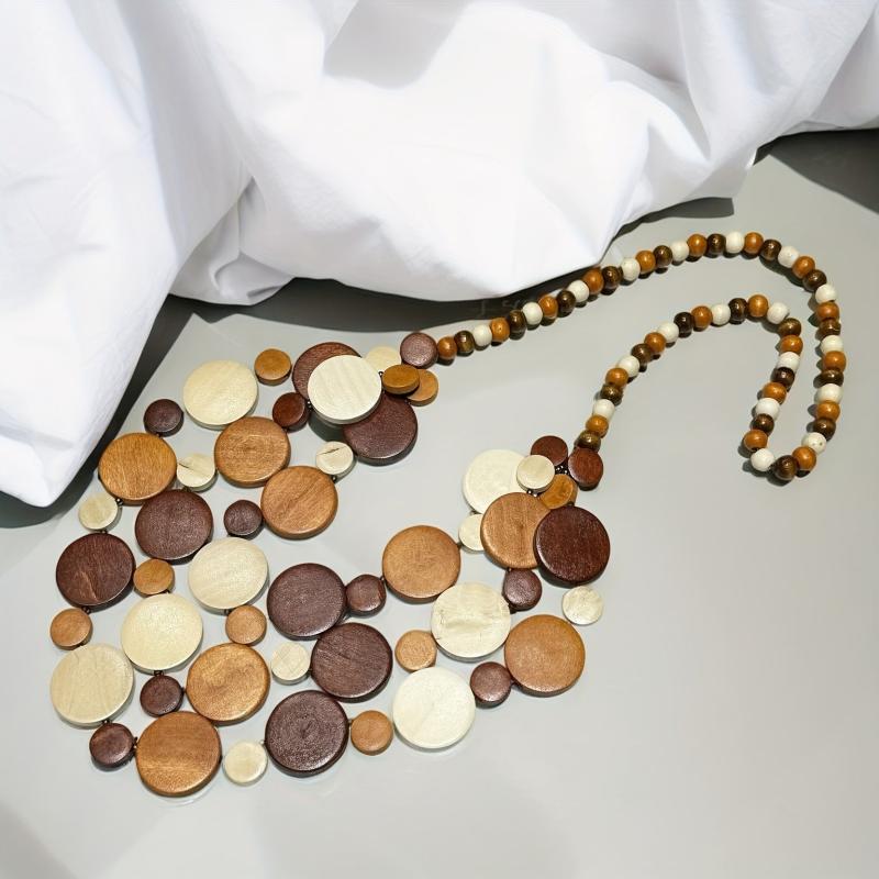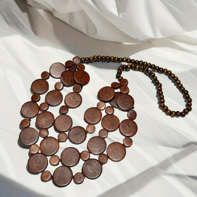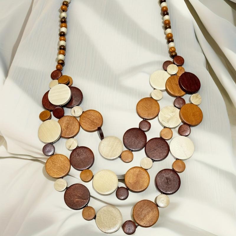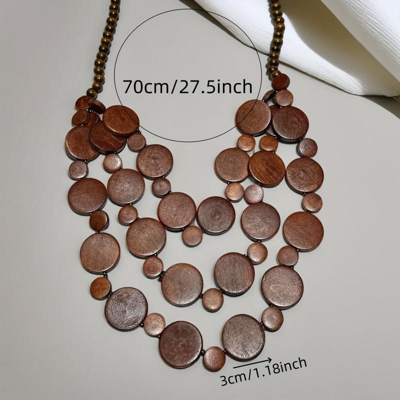 This necklace features a stacked three-layer design made from coconut shell, adding a touch of bohemian European and American ethnic vintage style to your look. It's fashionable and versatile, perfect for any occasion.