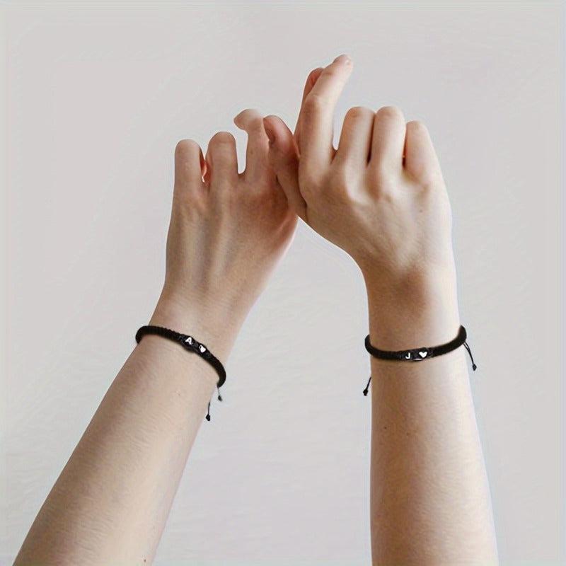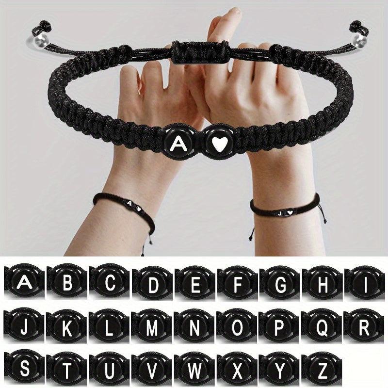 Express your love with this beautiful European and American style braided bracelet featuring 26 English letters. A perfect gift for Valentine's Day or any special occasion.