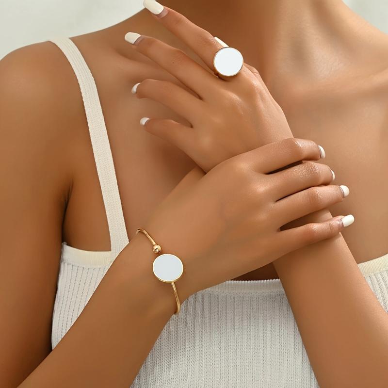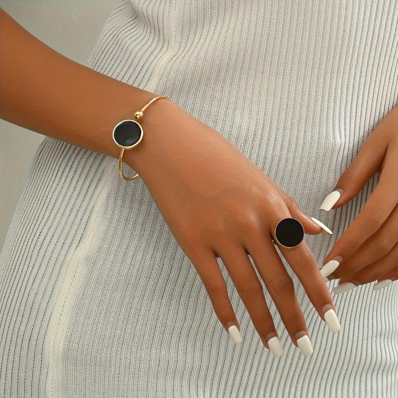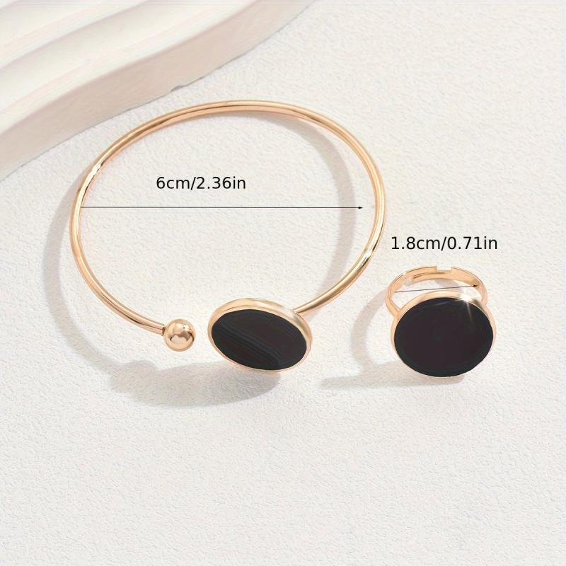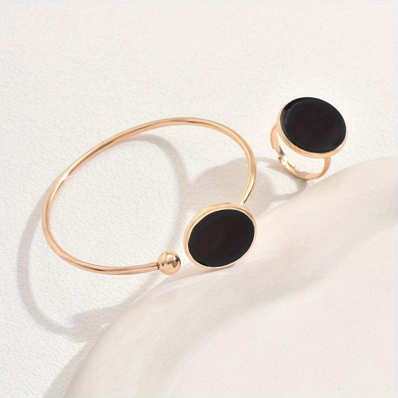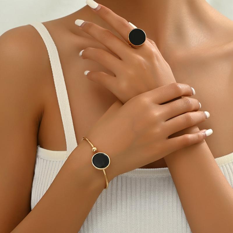 This fashionable European and American style jewelry set includes a bracelet and a ring, featuring a versatile geometric design. The open adjustable design makes it perfect for daily wear and commuting.