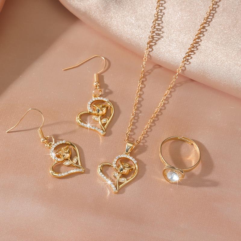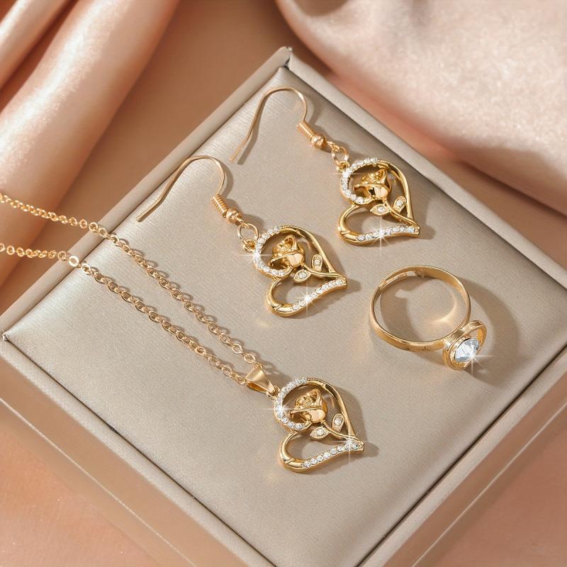 This set is perfect for engagement, wedding, anniversary, or all-season wear. It features synthetic gemstones for a glamorous look.