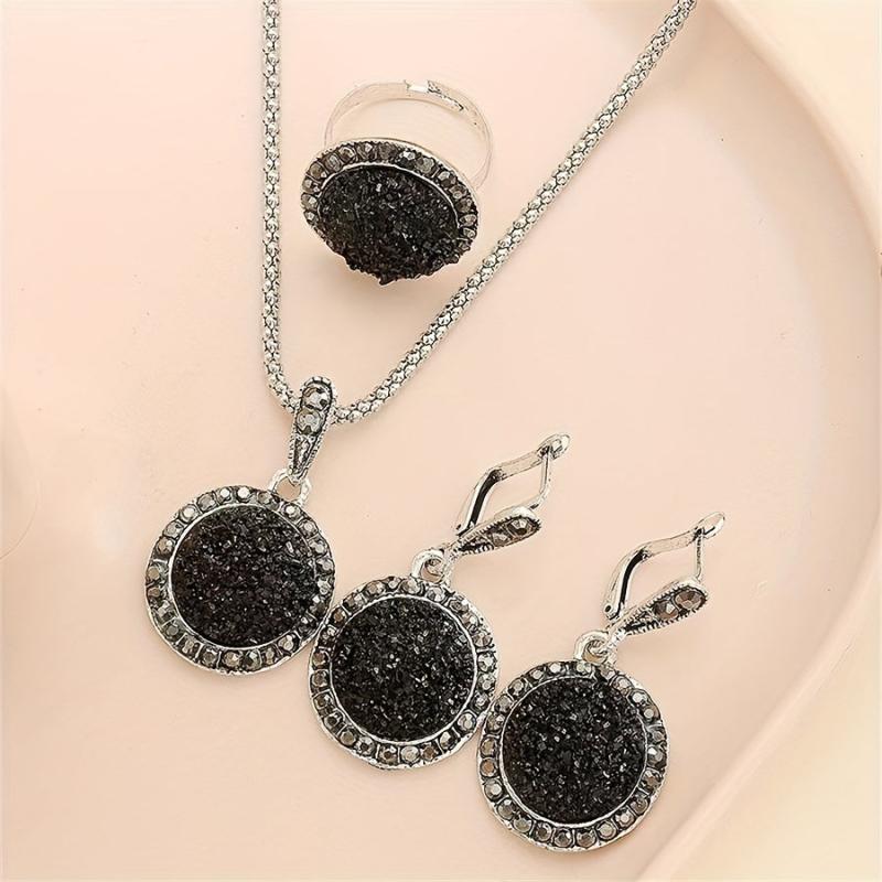 Enhance your style with this fashionable set of ring, necklace, and earrings. Featuring sparkling accents, this set is perfect for any occasion.