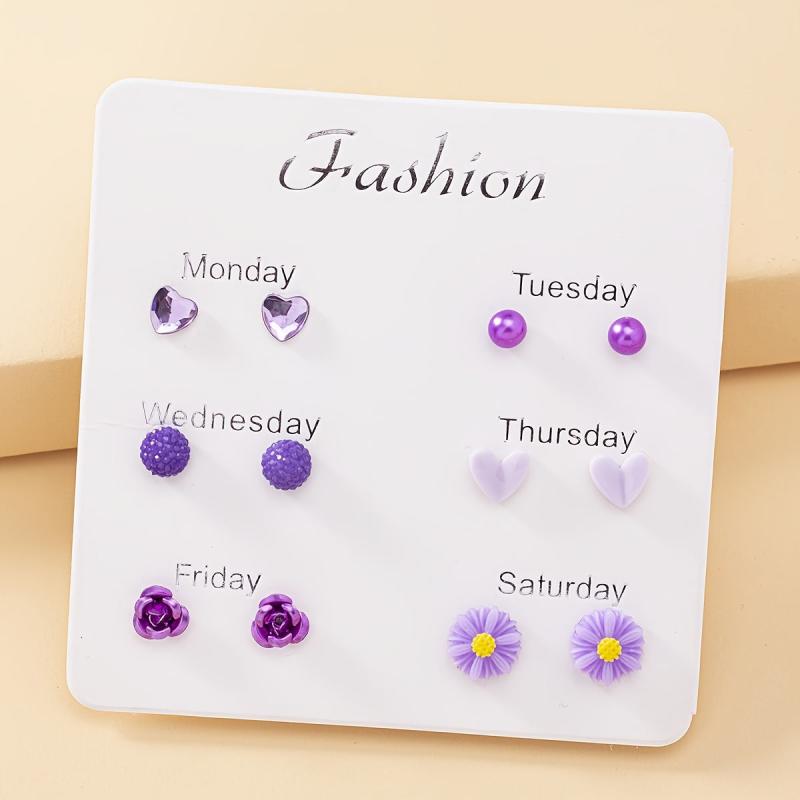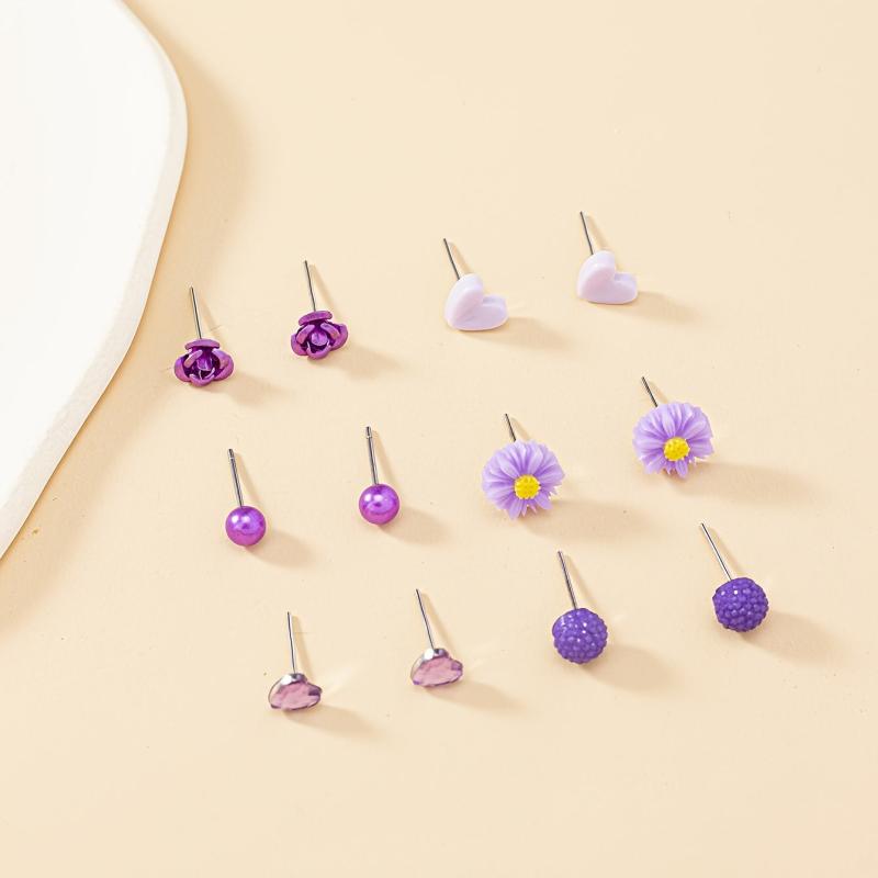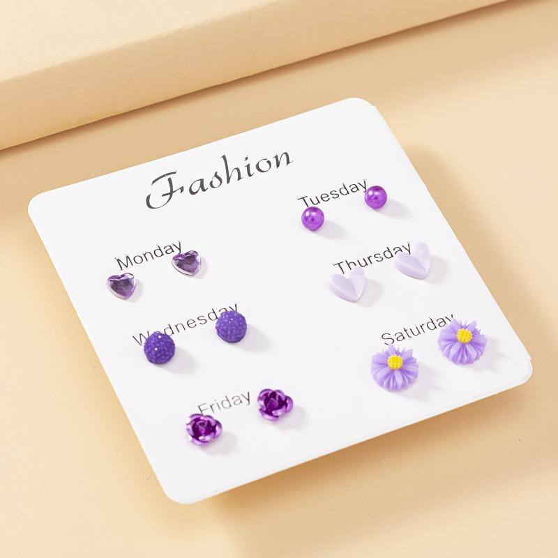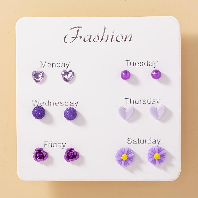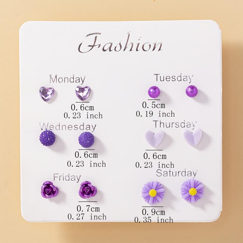 Elevate your style with this set of 6 pairs of heart shaped flower resin earrings. Perfect for daily wear and they make a great holiday gift for women.