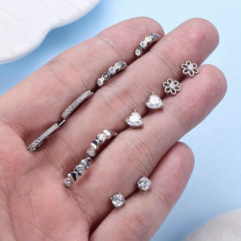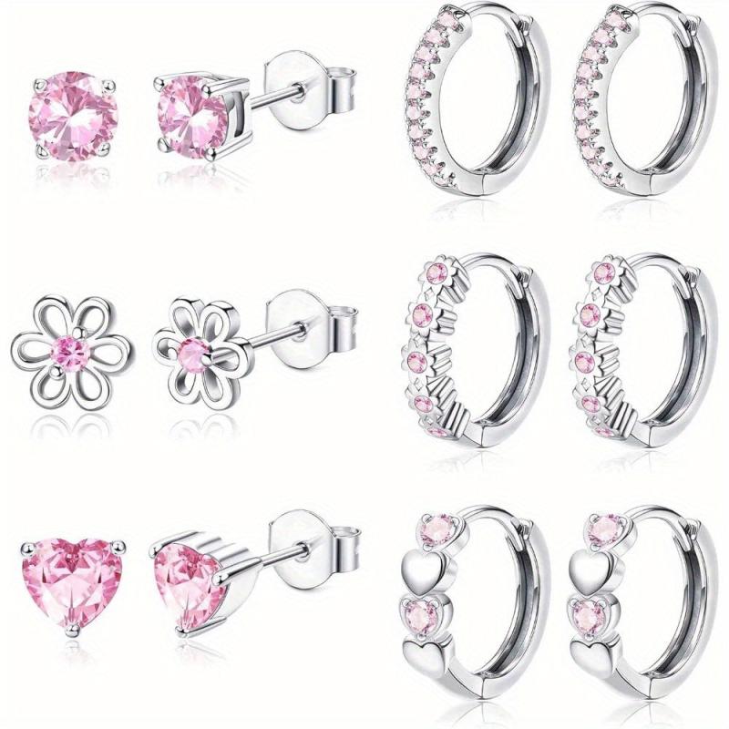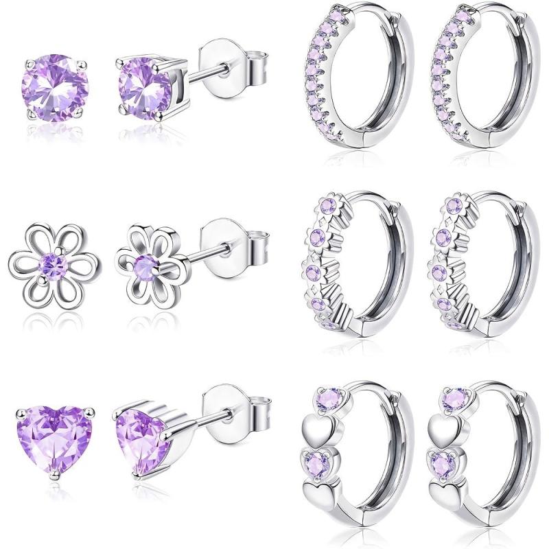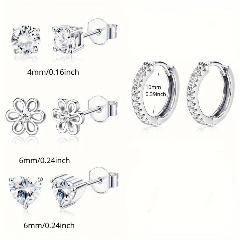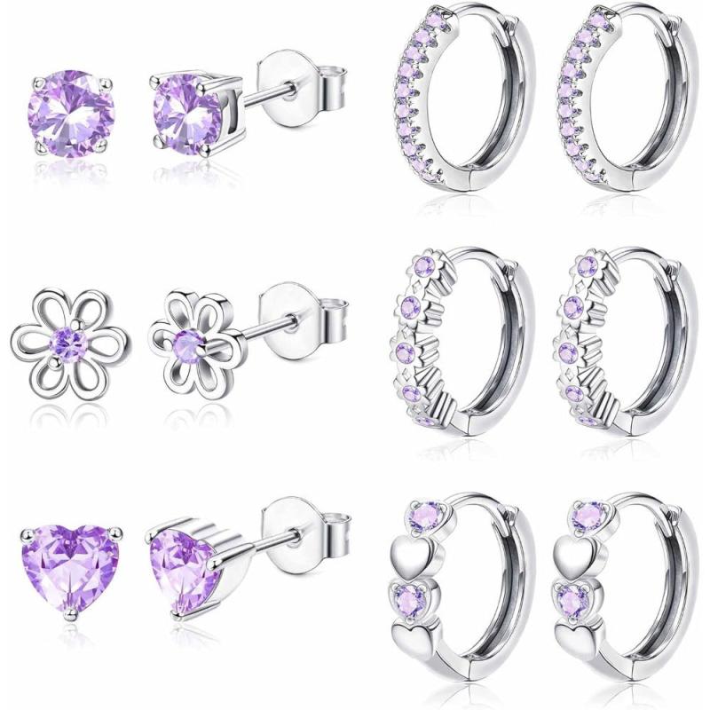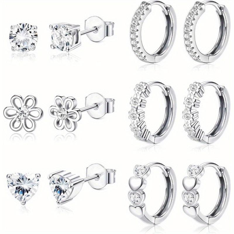 This set includes 6 pairs of earrings suitable for sensitive ears. Features studs and hoop designs with sparkling cubic zirconia. Perfect for everyday wear or special occasions.