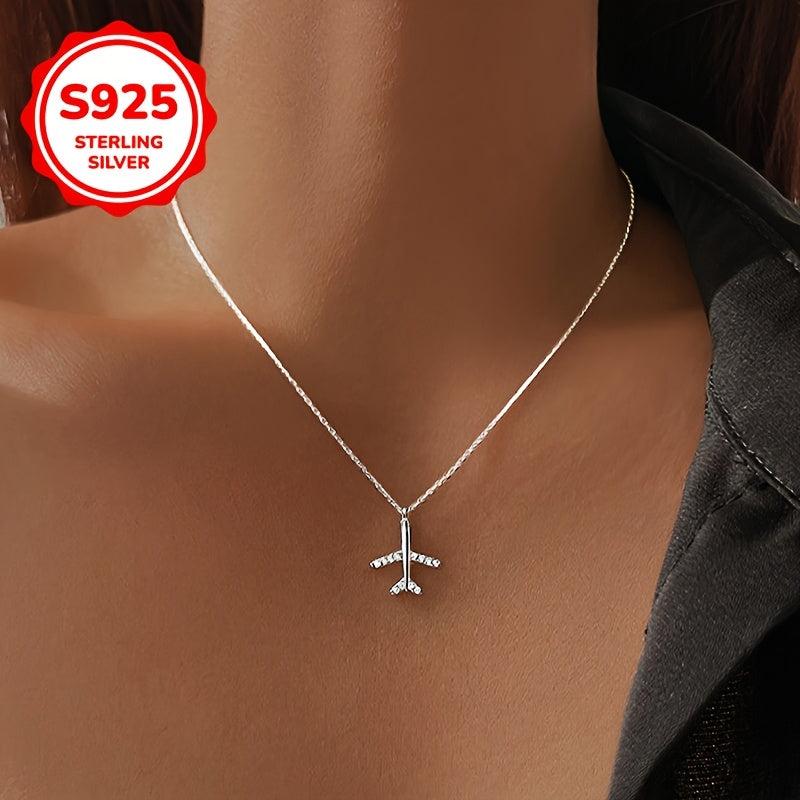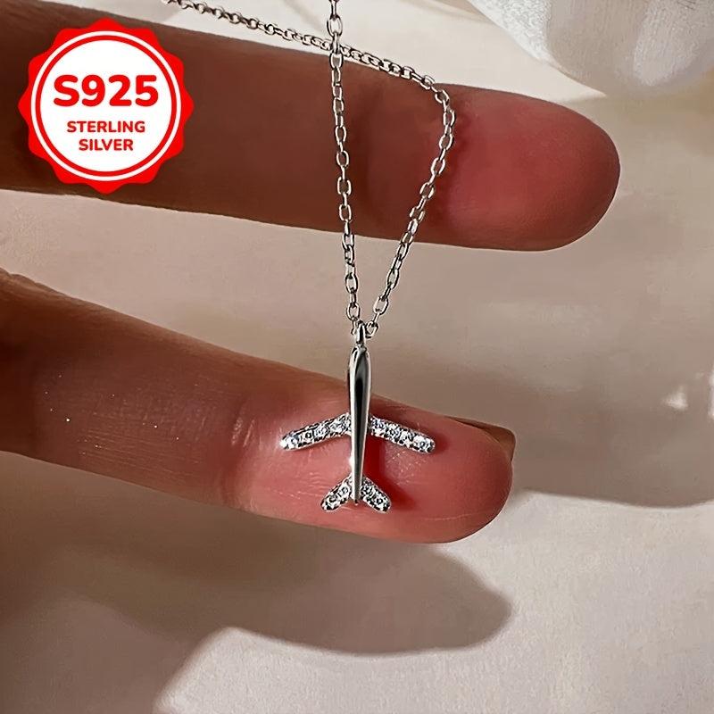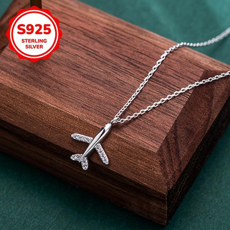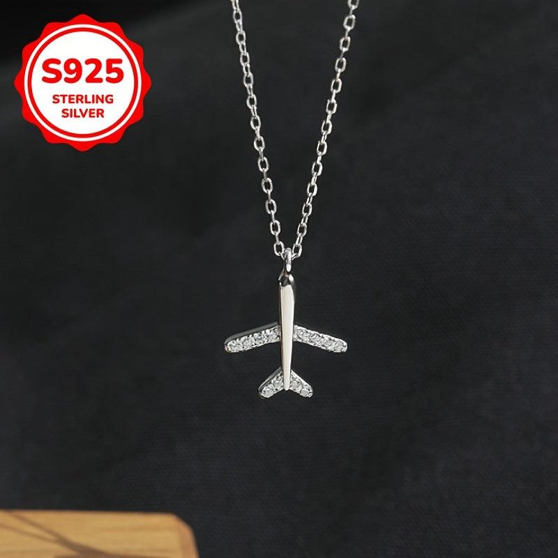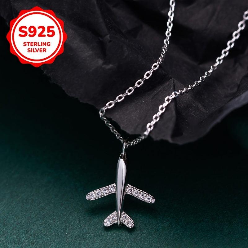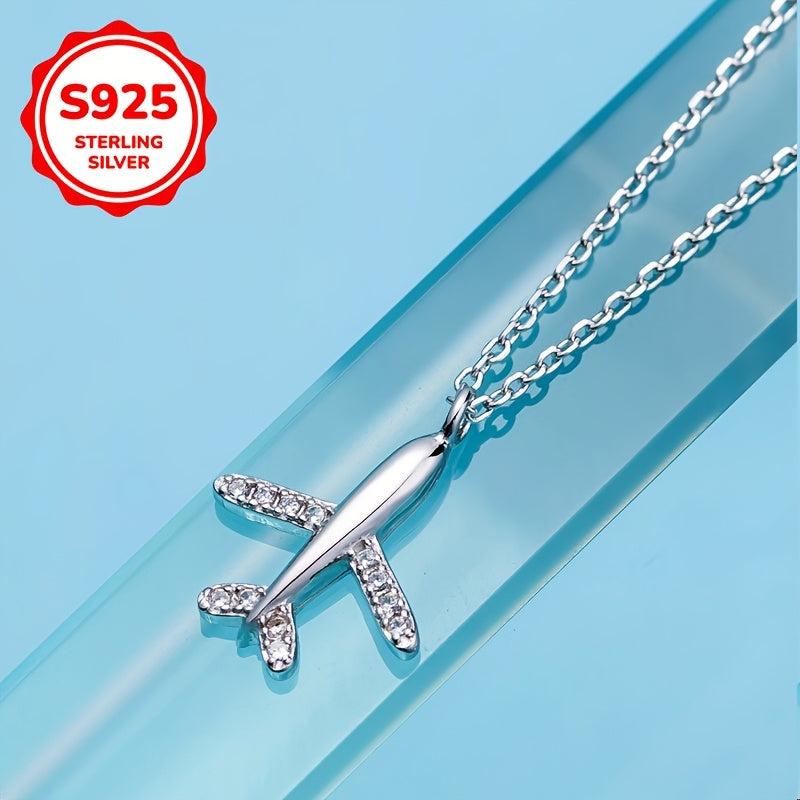 This stunning necklace features a 925 sterling silver airplane pendant adorned with sparkling cubic zirconia. Perfect for all seasons and occasions, it is low allergy and ideal for couples.