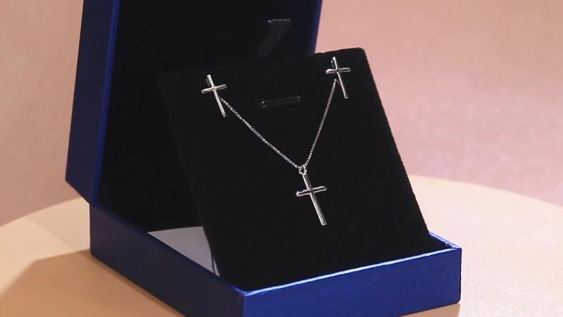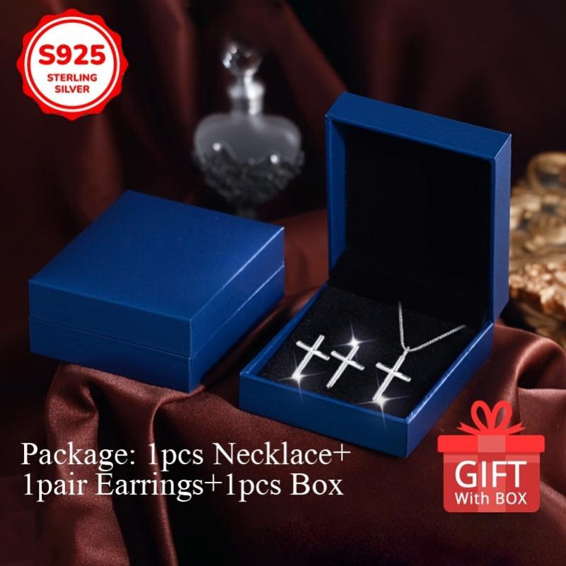 Elegant set featuring a cross pendant and matching earrings in 925 sterling silver.
