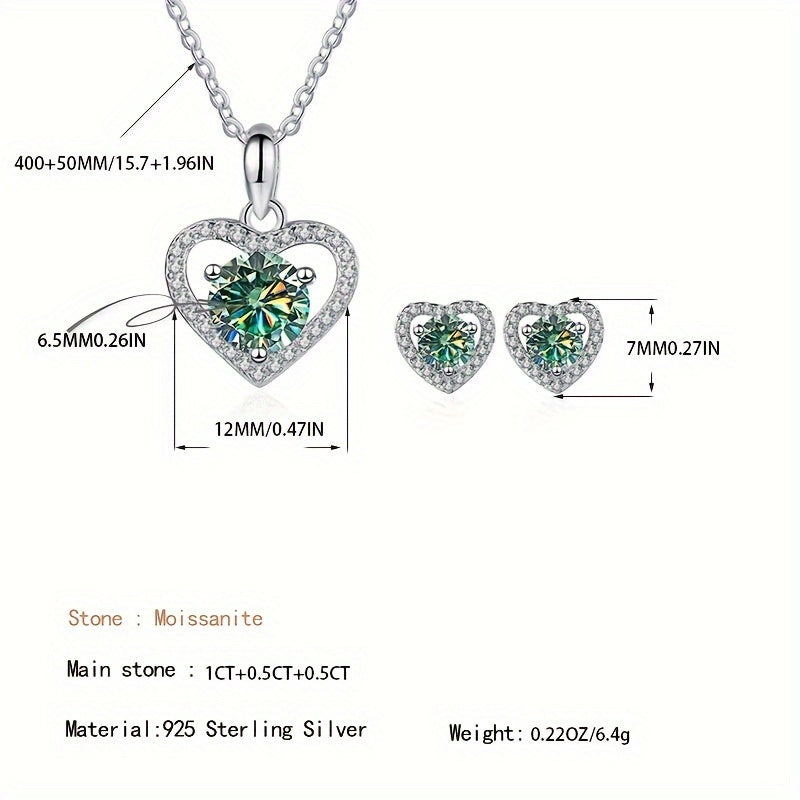 Complete your look with this stunning 925 sterling silver jewelry set featuring a sparkling heart inlaid with moissanite. High-quality and hypoallergenic, perfect for any occasion.