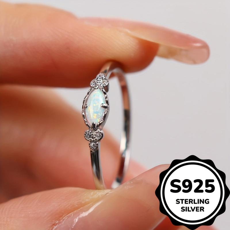 This stunning 925 sterling silver ring features an opal inlaid in a horse eye shape, symbolizing history and elegance. It makes a high-quality anniversary or birthday gift for her.