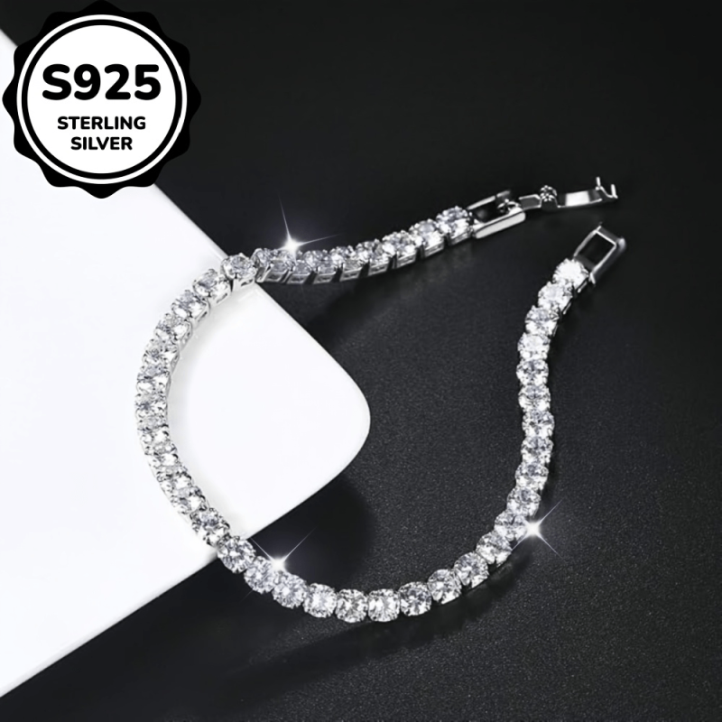 This stunning tennis bracelet is crafted from 925 sterling silver and embellished with sparkling rhinestones. Its classic and sporty style makes it ideal for all seasons and daily wear. A perfect gift for Mother's Day.