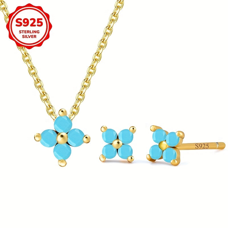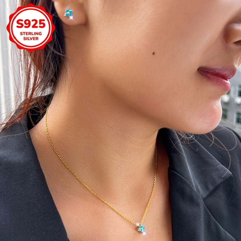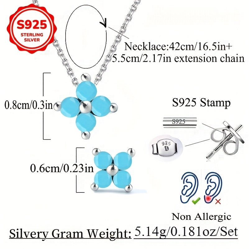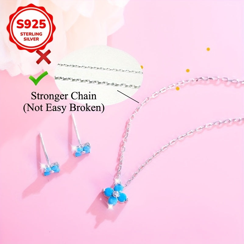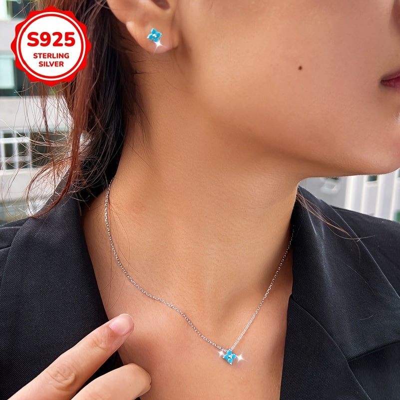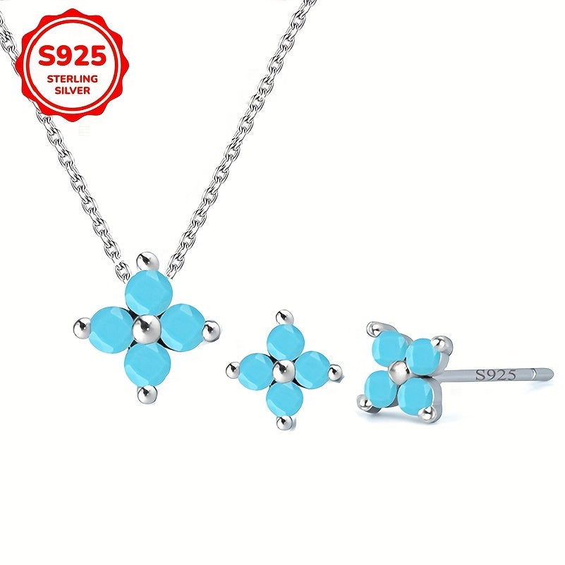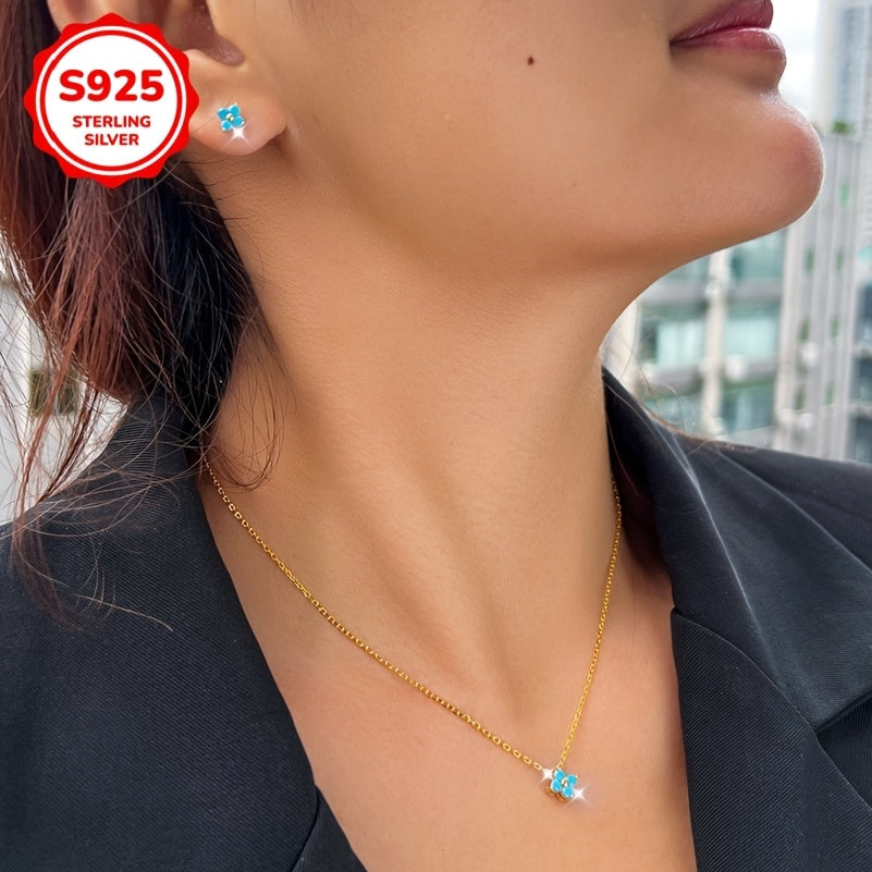 This elegant jewelry set includes a pair of clover stud earrings and a clover pendant necklace, all made of high-quality 925 sterling silver.