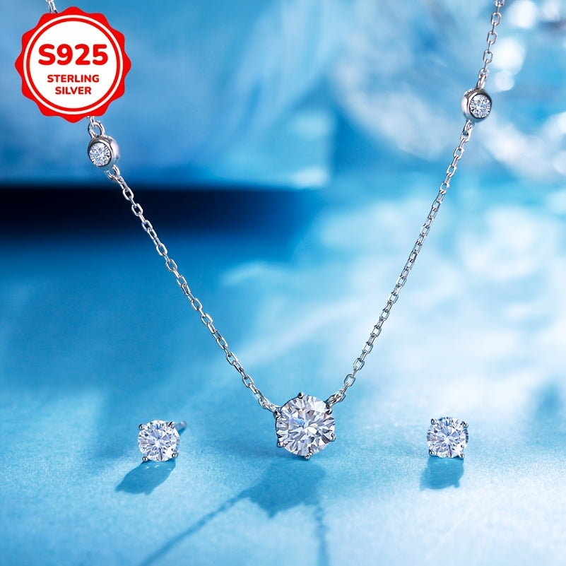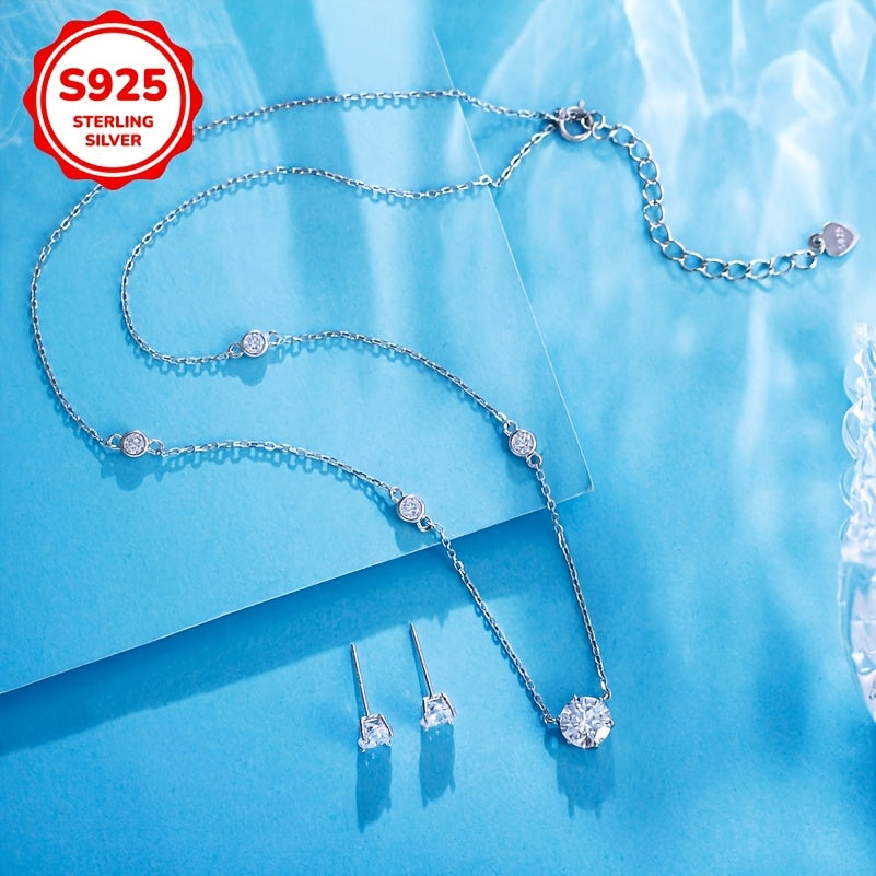 This elegant set of jewelry for women includes a pair of round stud earrings and a chain necklace made of high-quality 925 sterling silver. The total weight of the set is 4.94 grams (0.174 ounces), offering a classic and timeless look.