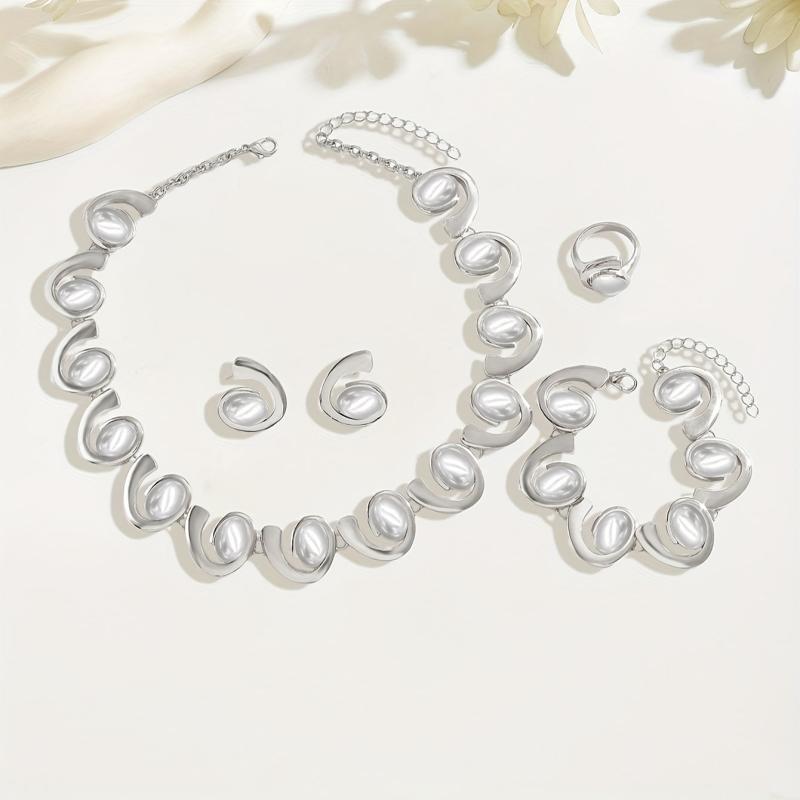 Elevate your look with this classic 4-piece jewelry set including earrings, necklace, bracelet, and ring. Perfect for daily wear, parties, and formal events.