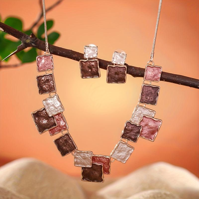 This set includes 2pcs earrings and 1pc necklace, perfect for spring and summer. Made of zinc alloy with a thin coating process, suitable for daily wear.