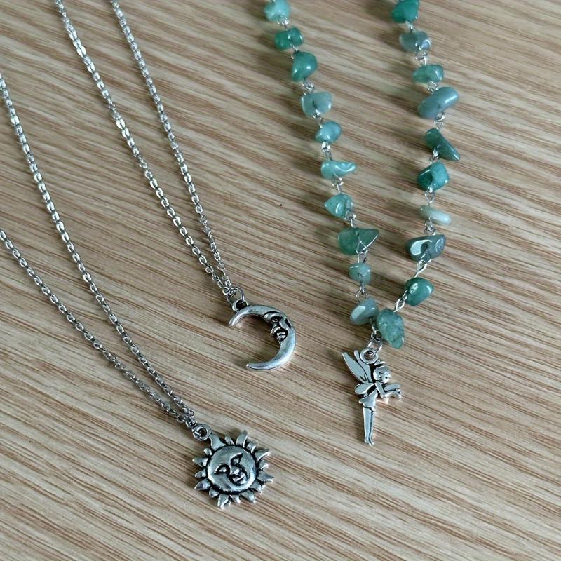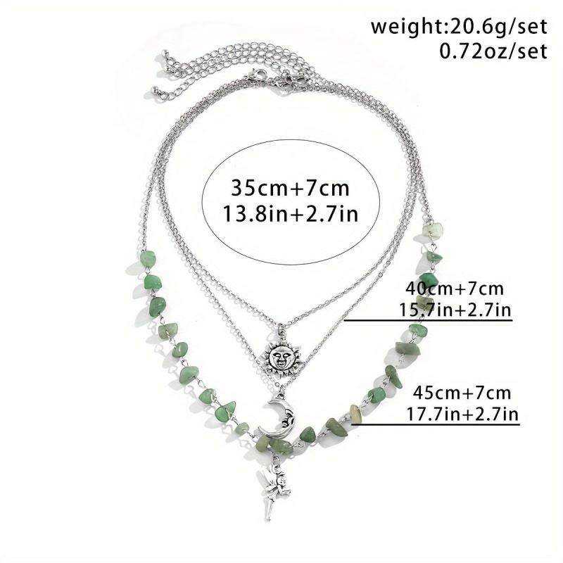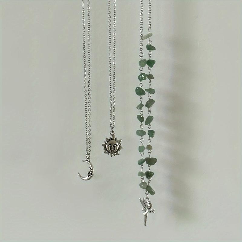 Elevate your style with this 3-piece necklace set featuring natural stone gems and a fairy pendant. Perfect for daily wear and adding a touch of bohemian charm.