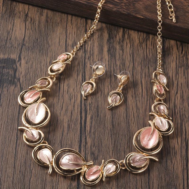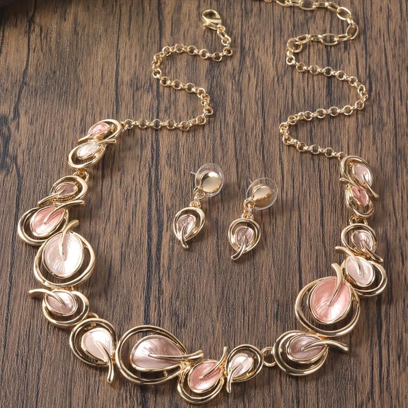 This 2pcs Earrings and 1pc Necklace Set features a bohemian leaf design, made of zinc alloy with a thin coating process. Perfect for daily wear, dance parties, holidays, and music events.