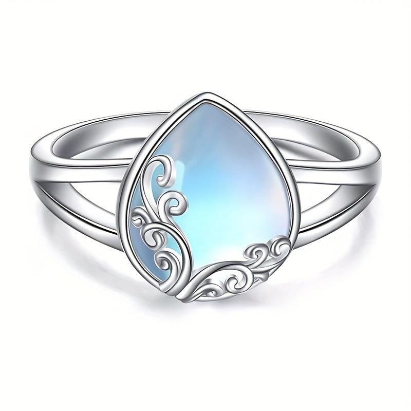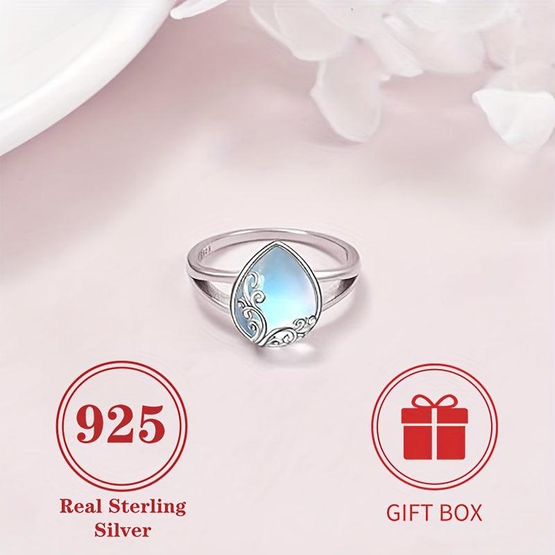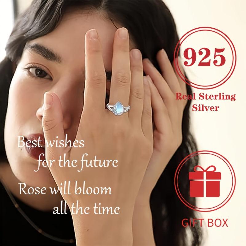 Elegant bohemian ring crafted with synthetic moonstone and S925 silver, perfect for everyday wear and as a thoughtful gift.