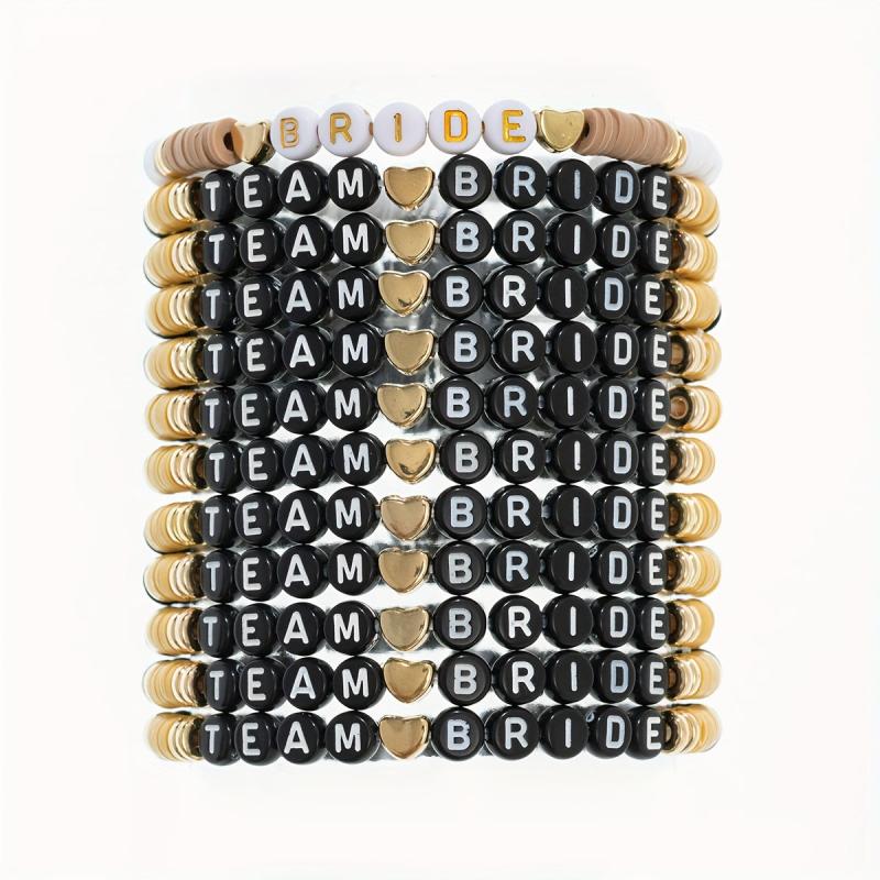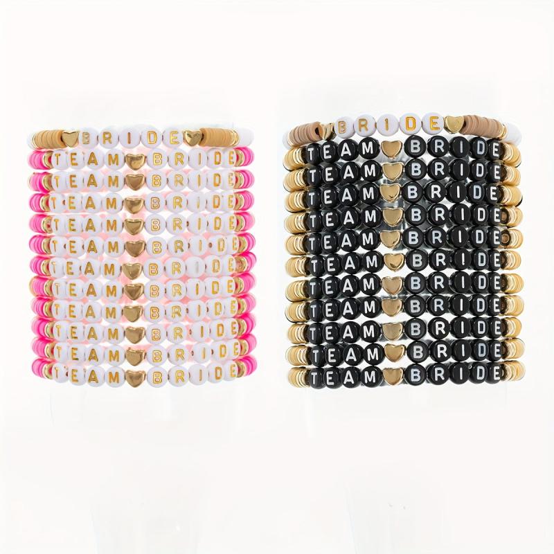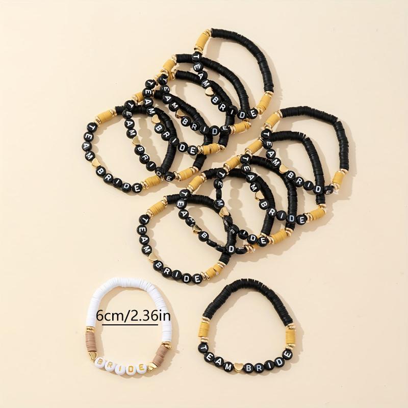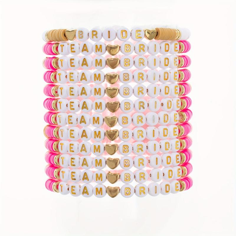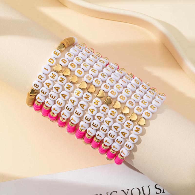 Elastic stretch wristbands for team bride, bachelorette parties, and gift giving. Bohemian vacation style with polymer clay beads.