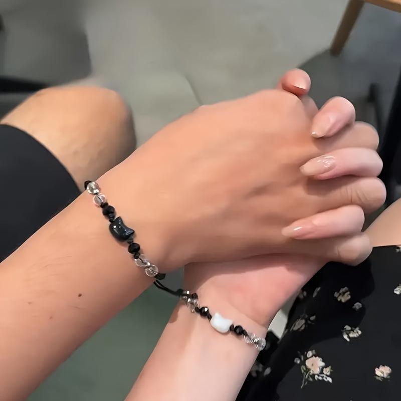 These 2pcs cat charm bracelets feature stylish cat pendants, perfect for daily wear or vacation accessories. Lightweight and eye-catching, these bracelets are a must-have for cat lovers.