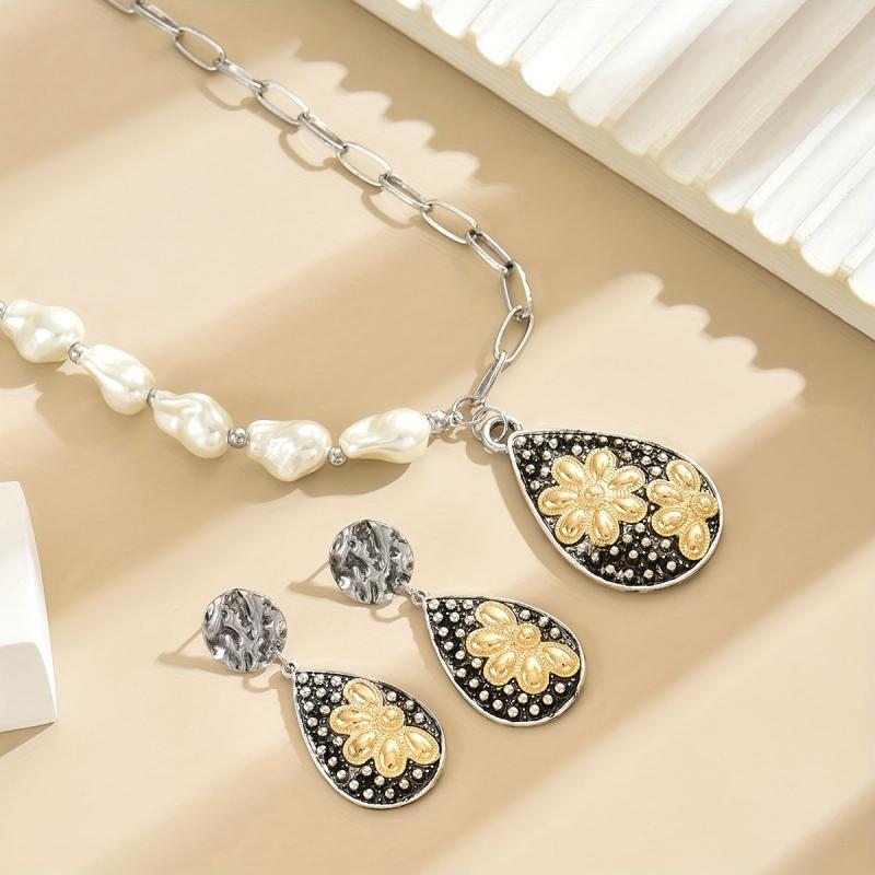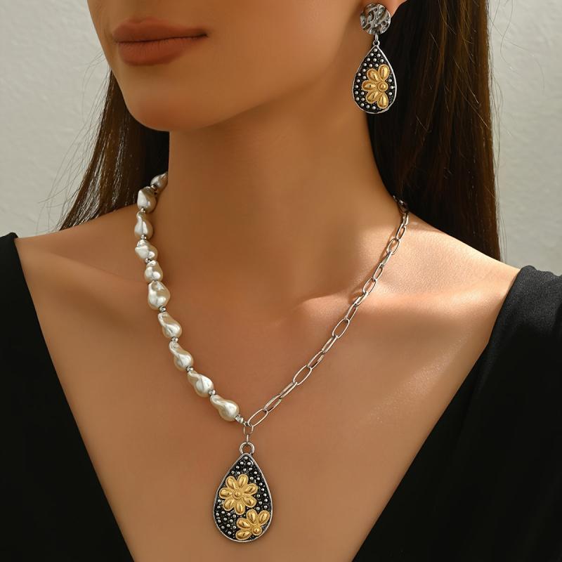 Complete your look with this stunning set featuring a beautiful drop necklace and matching earrings.