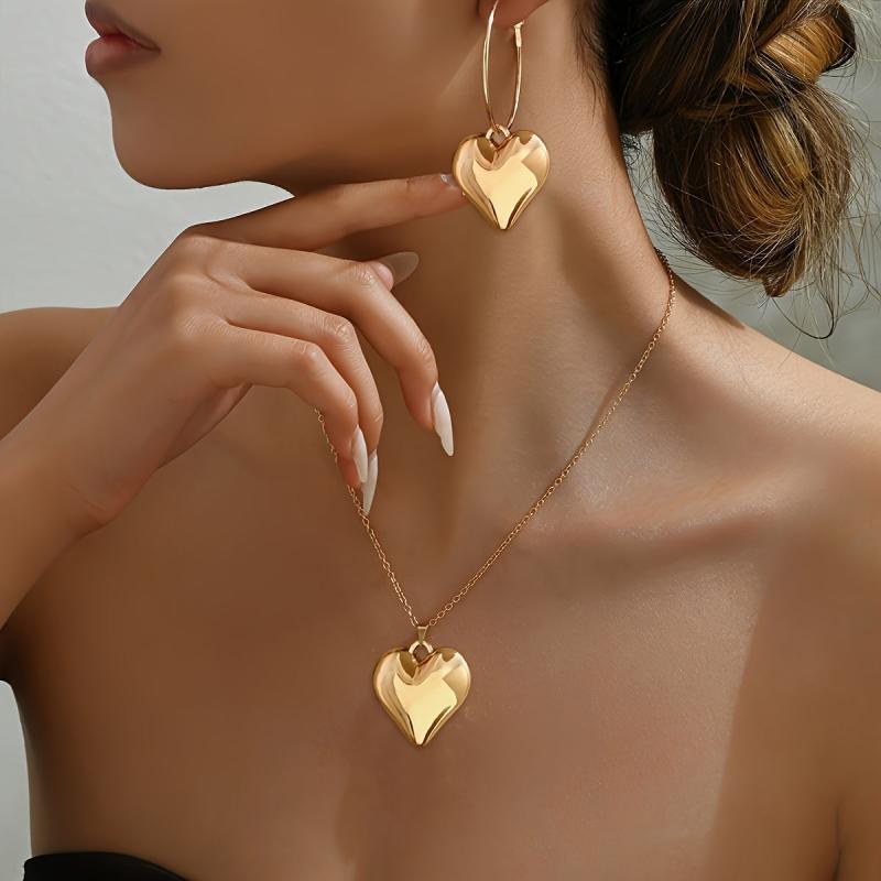 Add a touch of style to your outfit with this 3pcs European and American minimalist ins style heart pendant earring and necklace set. Perfect for women who love unique and personal accessories.