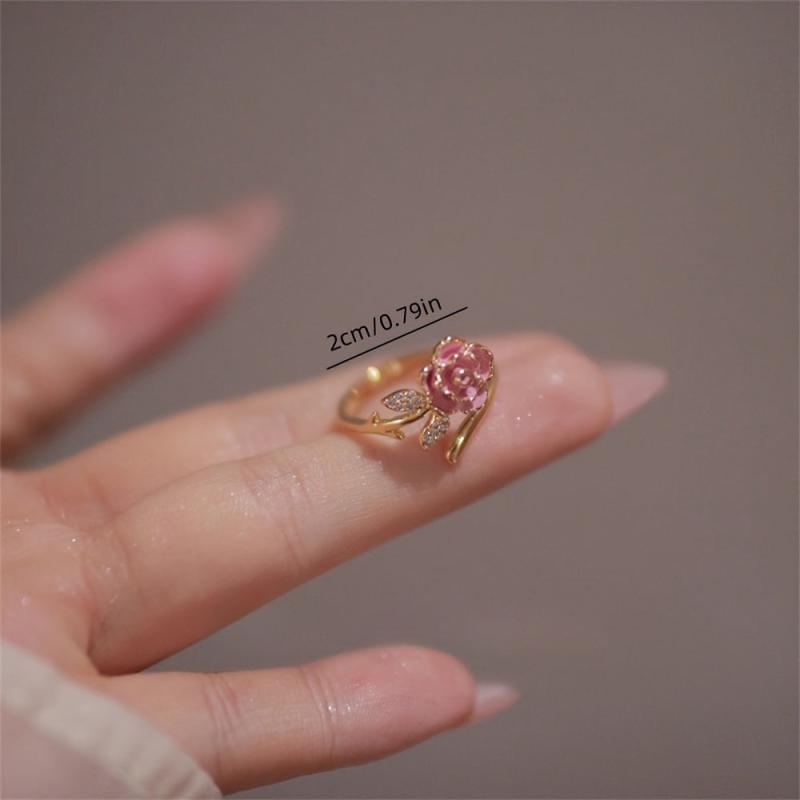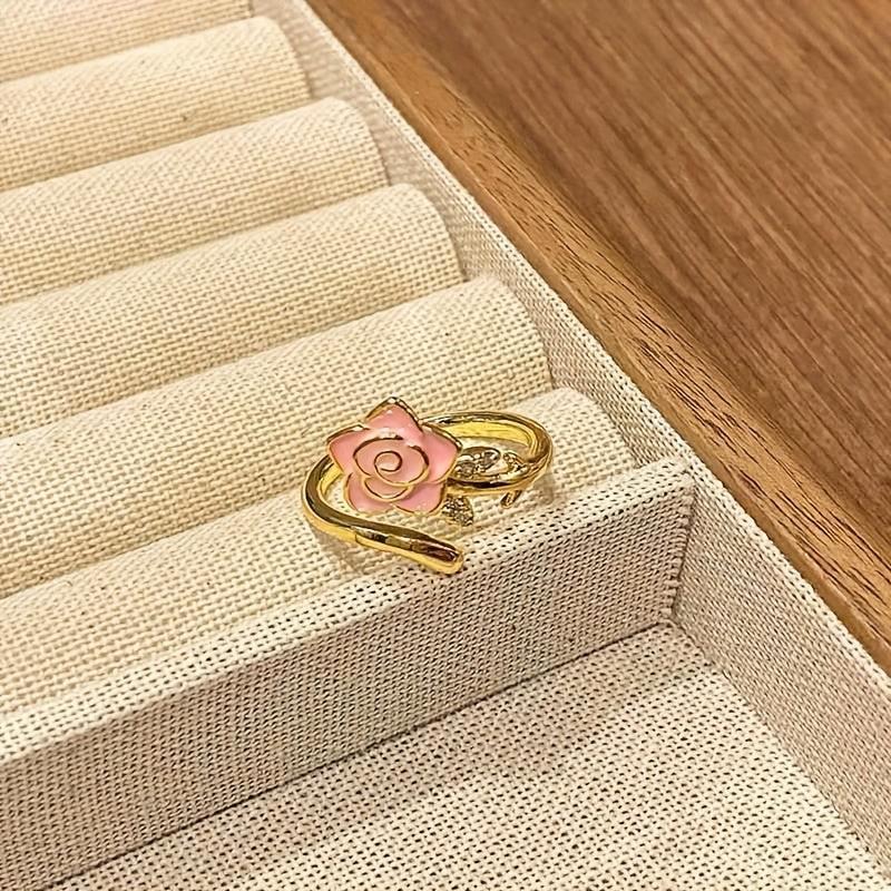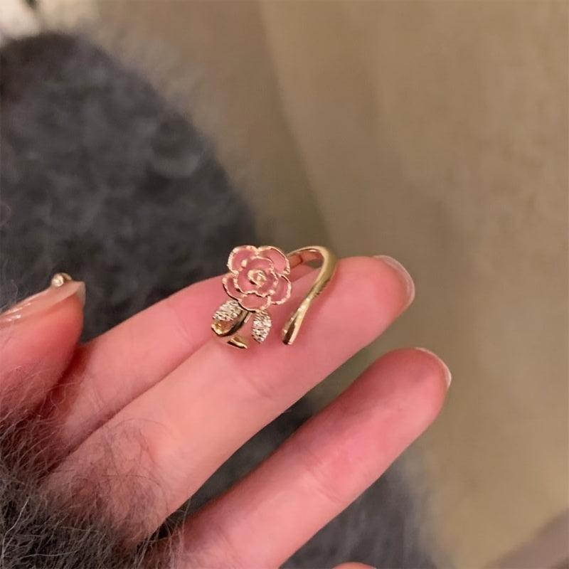 Elevate your look with this delicate golden rose ring. Made of 14K plated alloy with synthetic zirconia, this adjustable band is perfect for all seasons and makes a great gift.