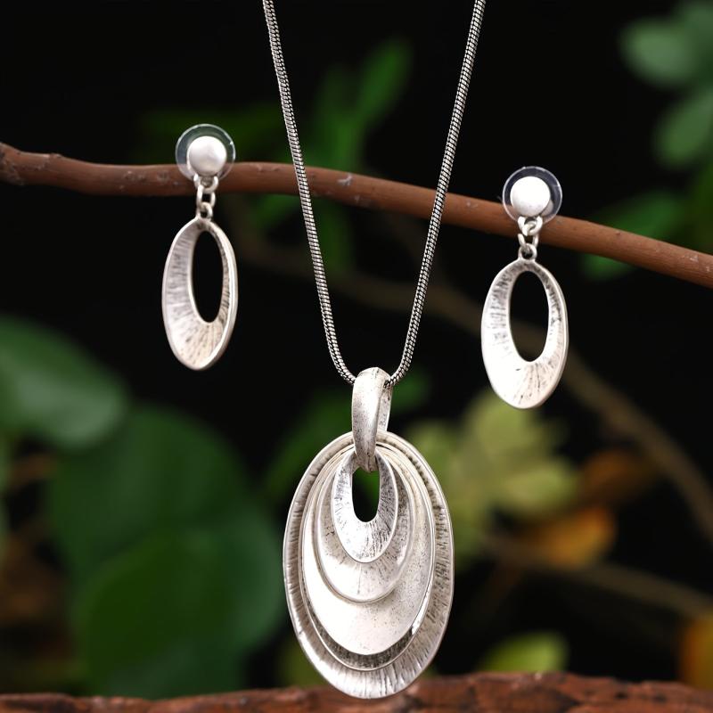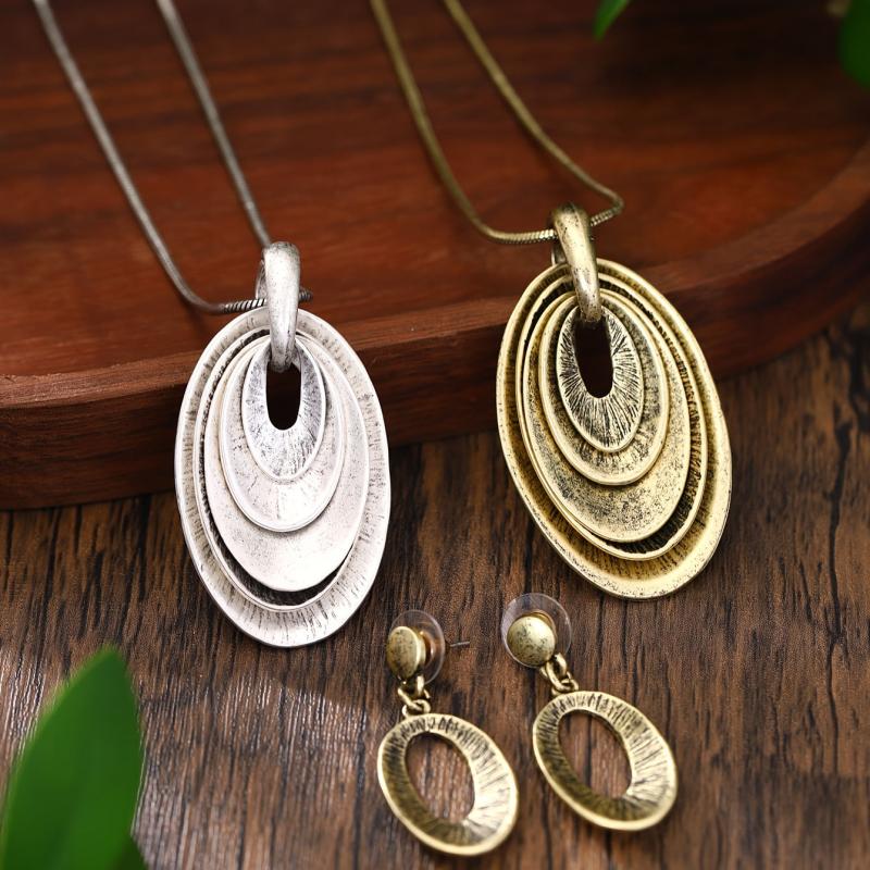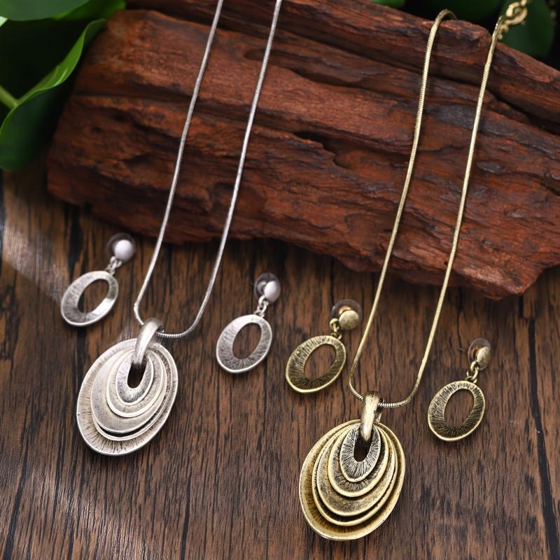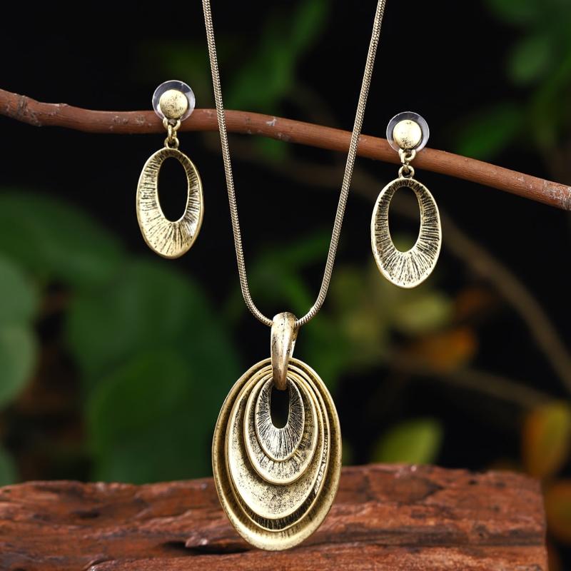 This set includes 2 earrings and 1 necklace with a vintage bohemian design. Made from zinc alloy, it is suitable for daily wear.
