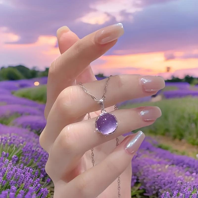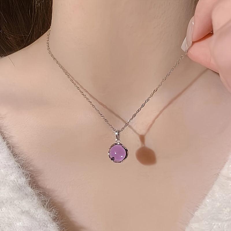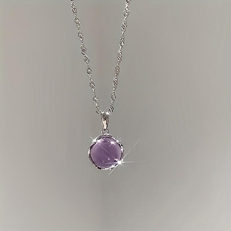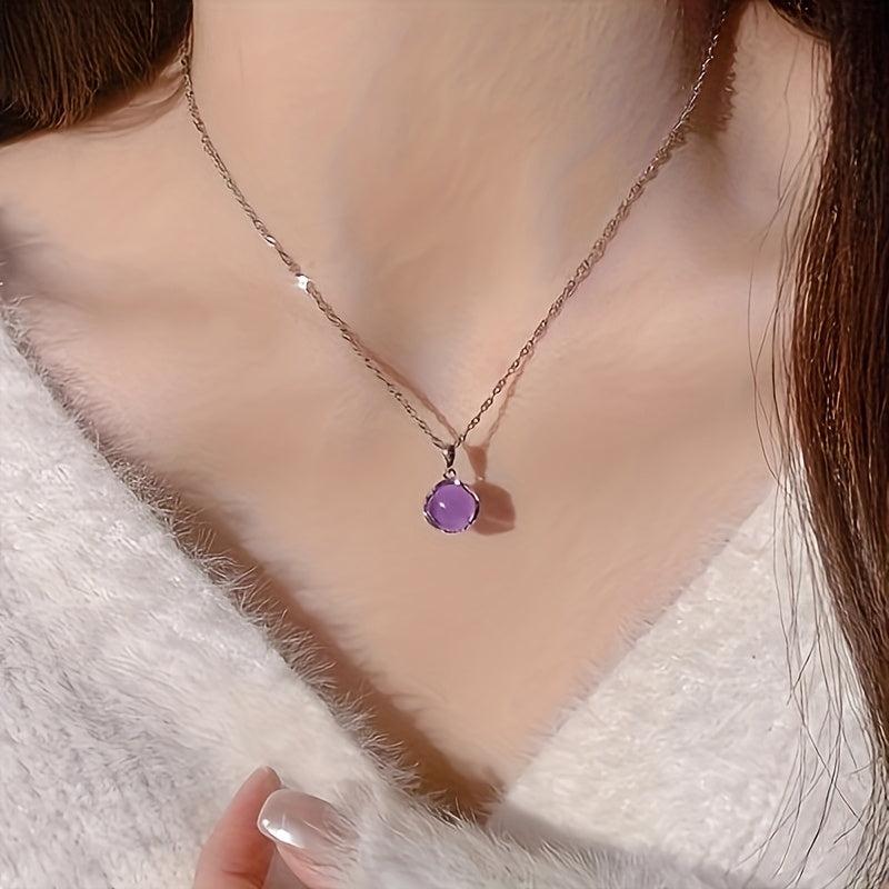 Elegant and stylish necklace featuring a gold chain with a purple pendant, ideal for a night out or casual wear.