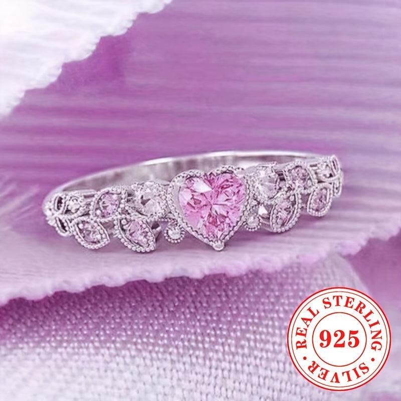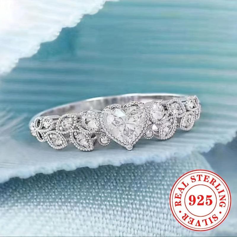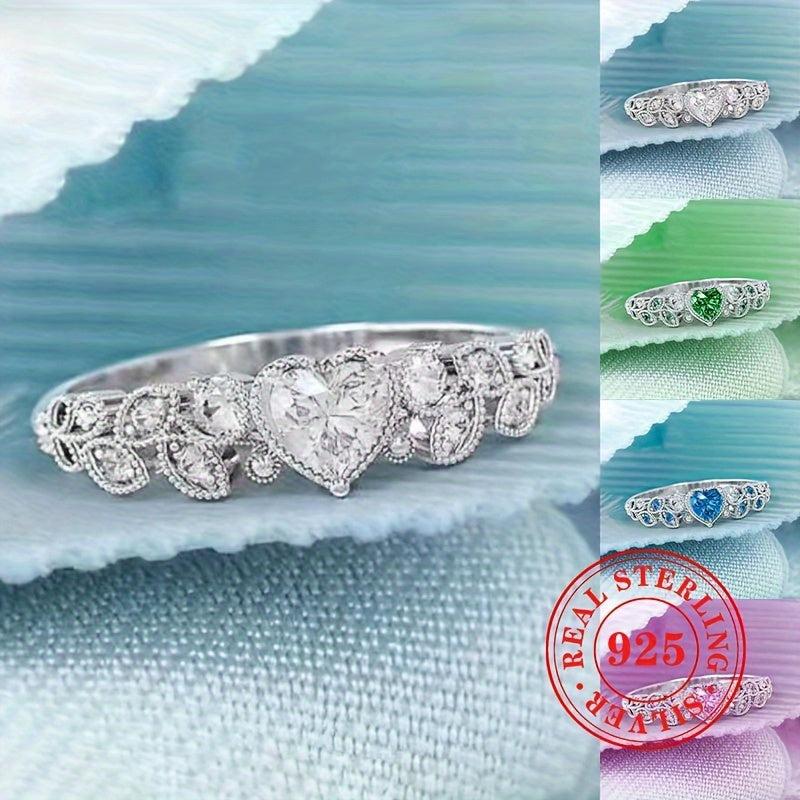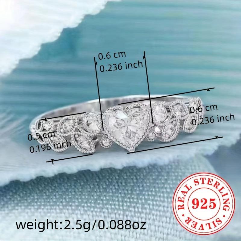 This exquisite heart-shaped ring is made of 925 sterling silver with rhodium plating, adorned with synthetic zirconia. Perfect for all seasons and as a gift for April birthdays. Lightweight at 2.5g.