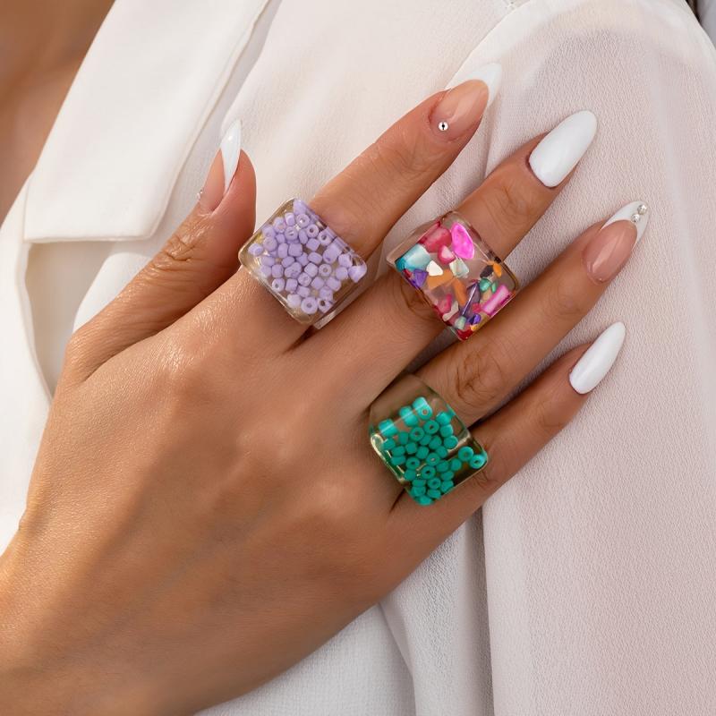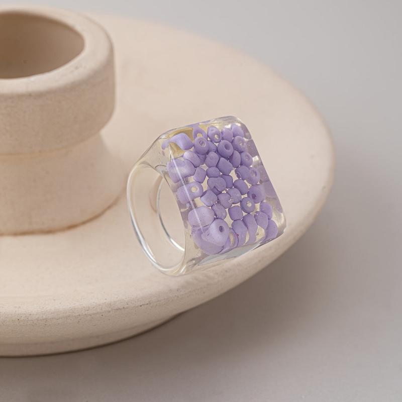Elevate your style with this sparkling pastel purple resin ring featuring rhinestones. Perfect for daily wear, this fashionable accessory adds a touch of glamour to any outfit.