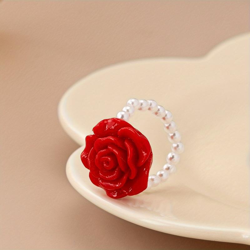 This fashionable plastic rose flower pendant ring is suitable for women to wear daily all seasons.