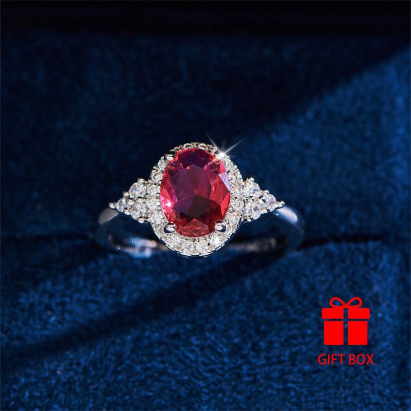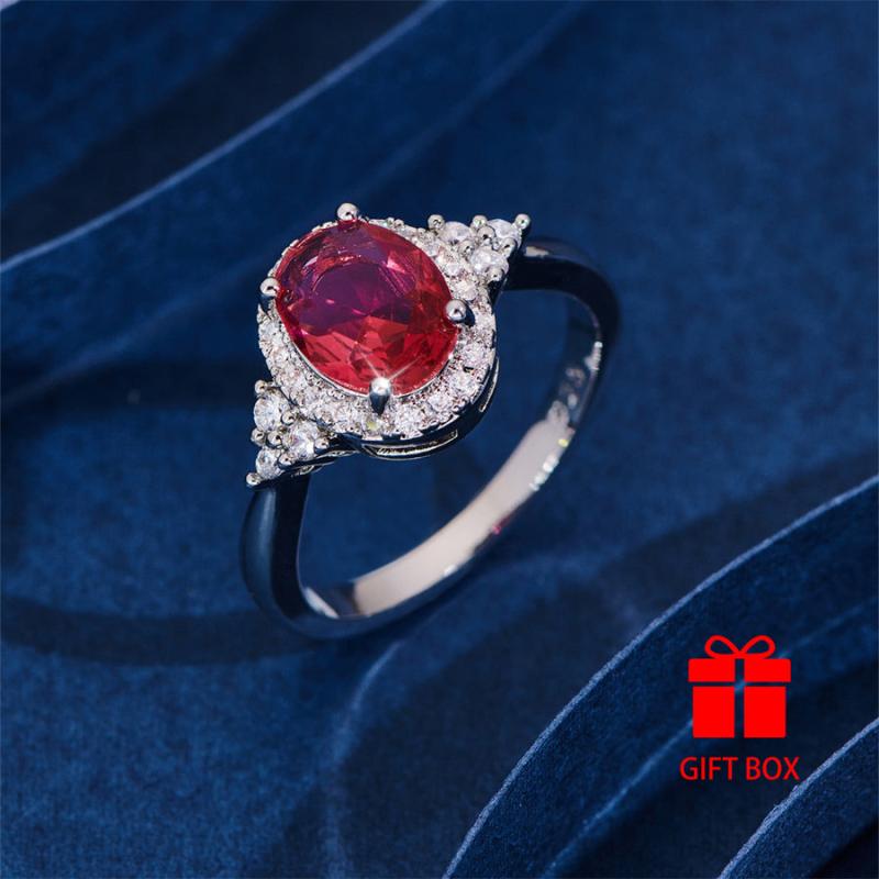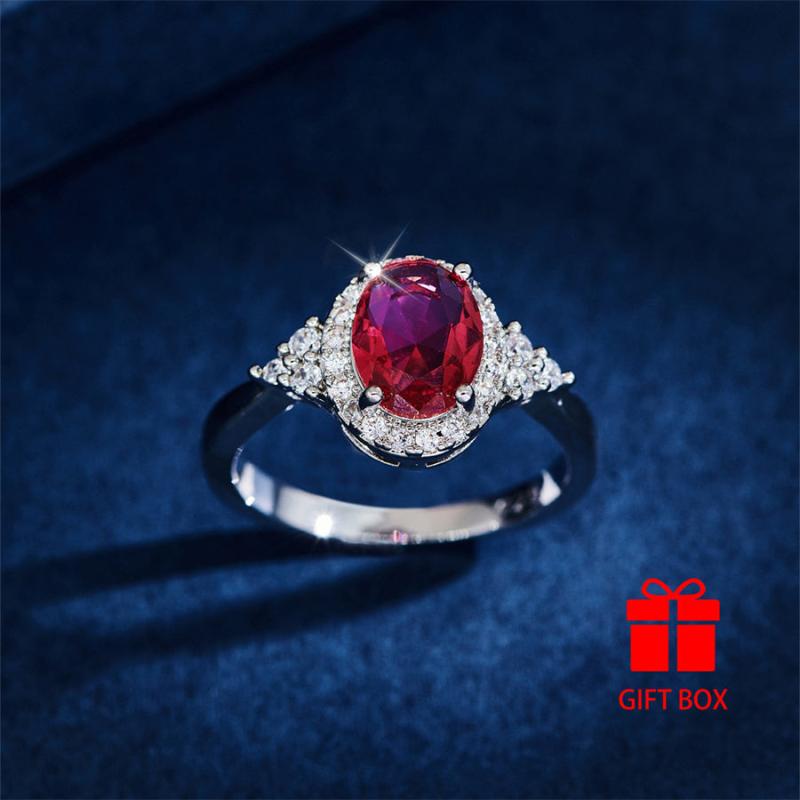 This oval red cubic zirconia ring is perfect for casual attire or gifting. It is durable and sparkles beautifully.