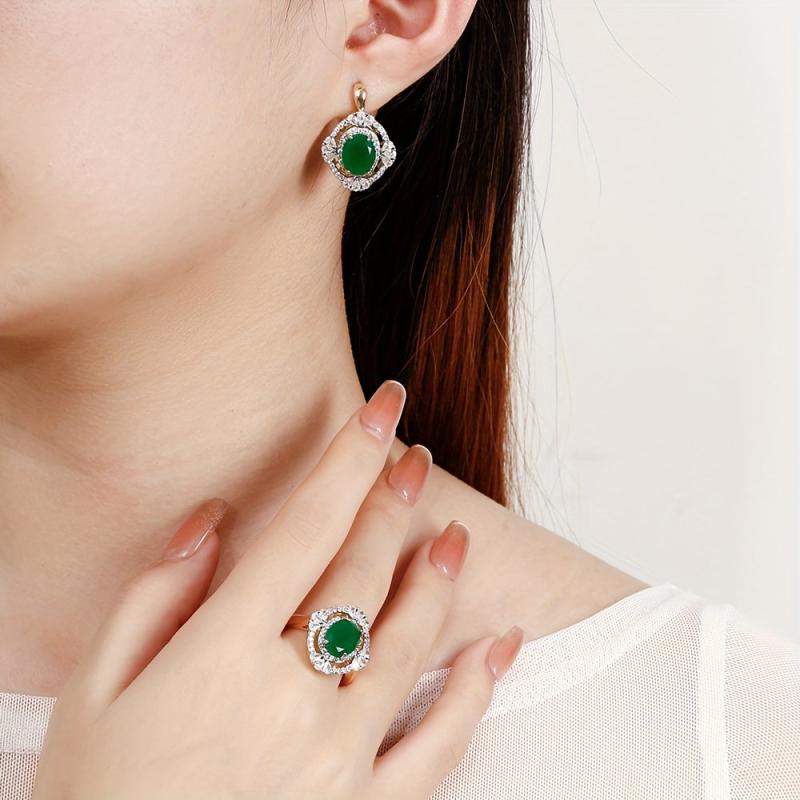 Stunning jewelry set featuring square hollow design with synthetic zirconia inlay. Made of high-quality copper with 14K golden plating. Perfect gift for any occasion. Available in multiple sizes.