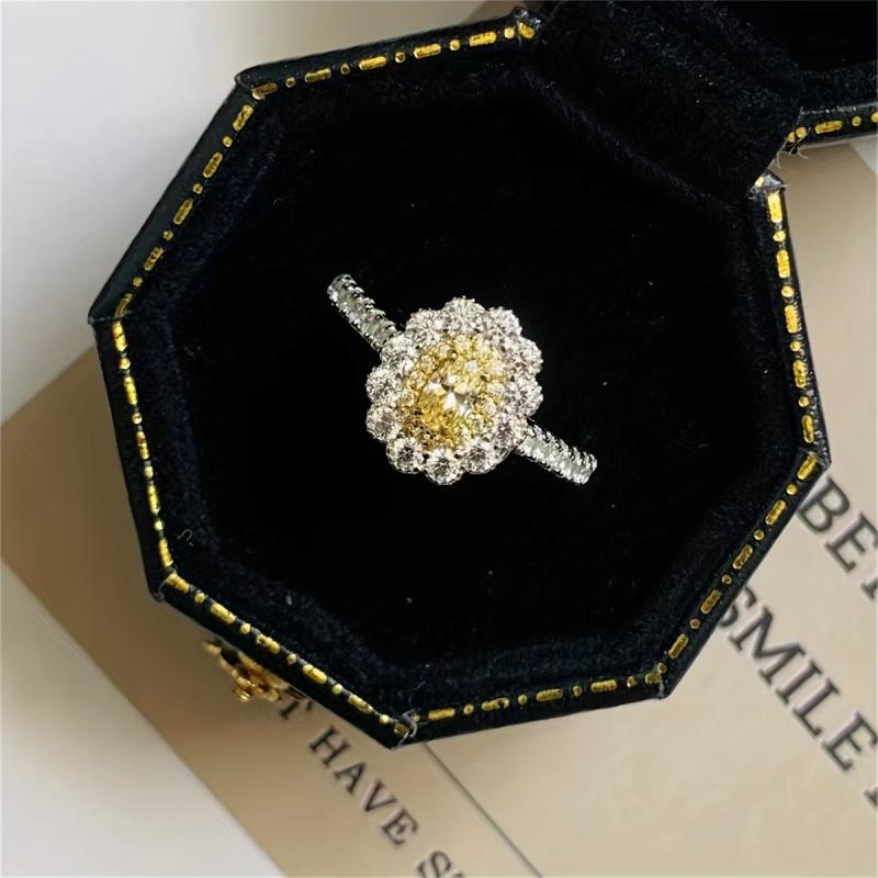 This stunning two tone sunflower ring is adorned with sparkling cubic zirconia. Perfect for weddings and special occasions.