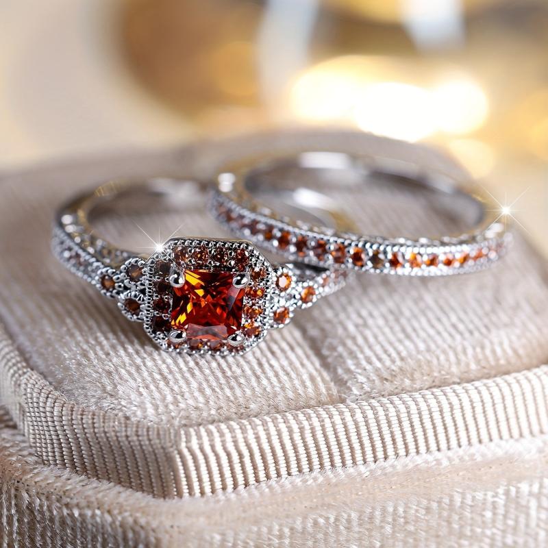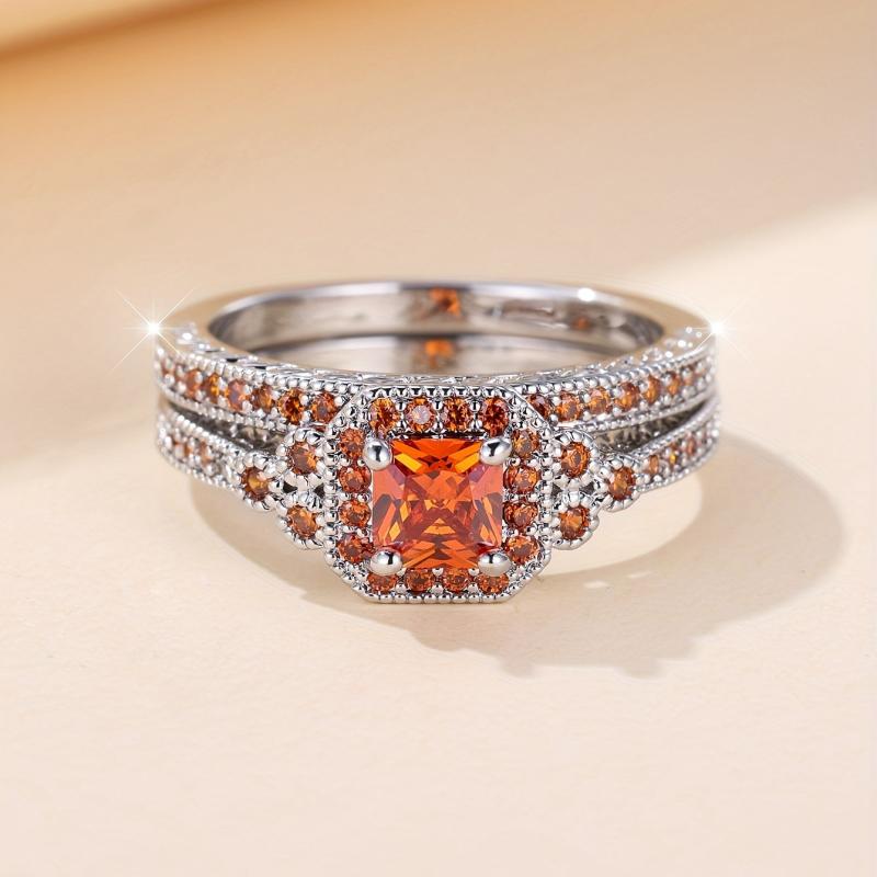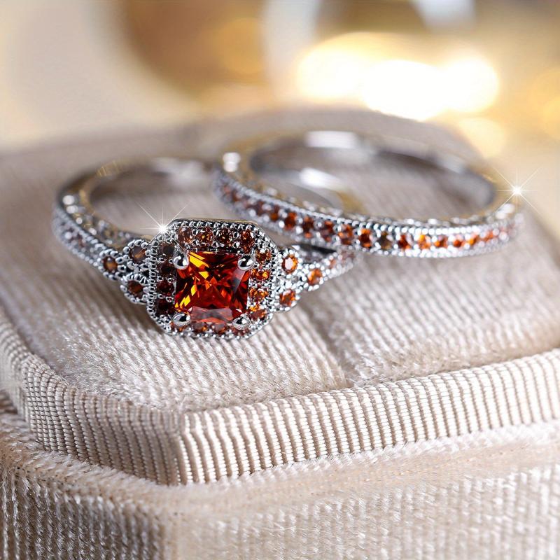 Celebrate your special day with this 2 piece wedding ring set. The bride's ring features zirconia sparkles, and the bridesmaid ring is a beautiful complement. A perfect gift for the couple!