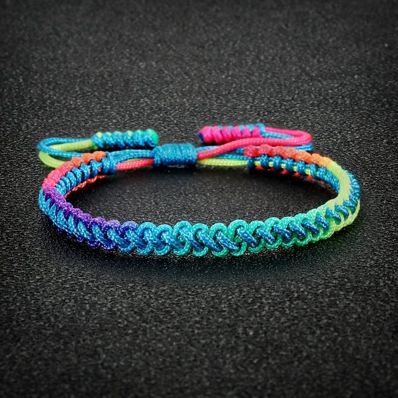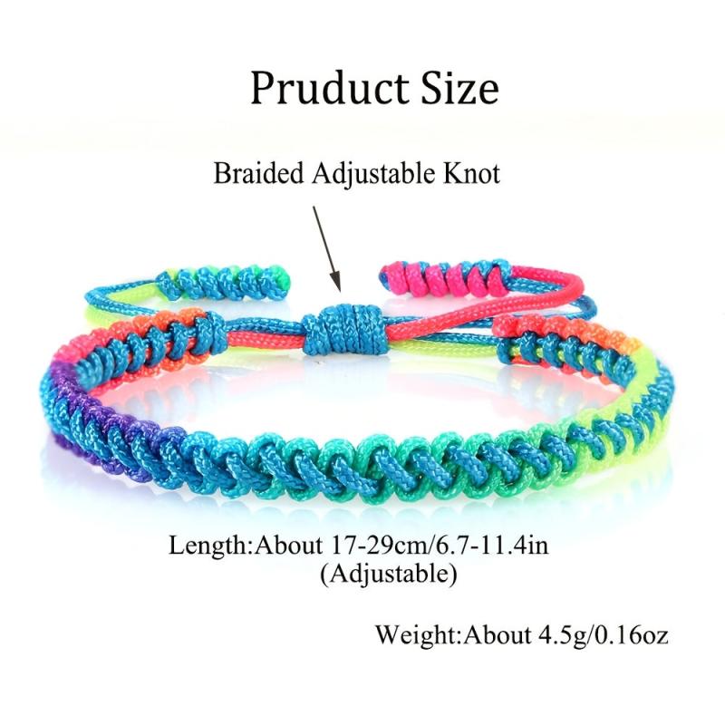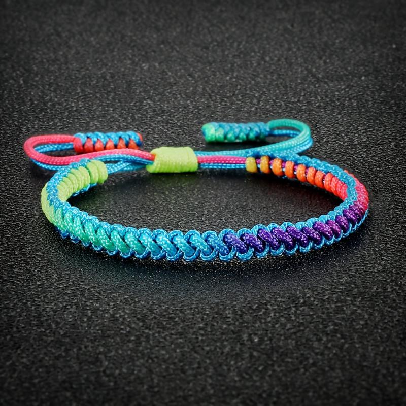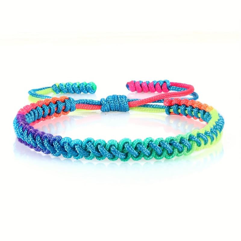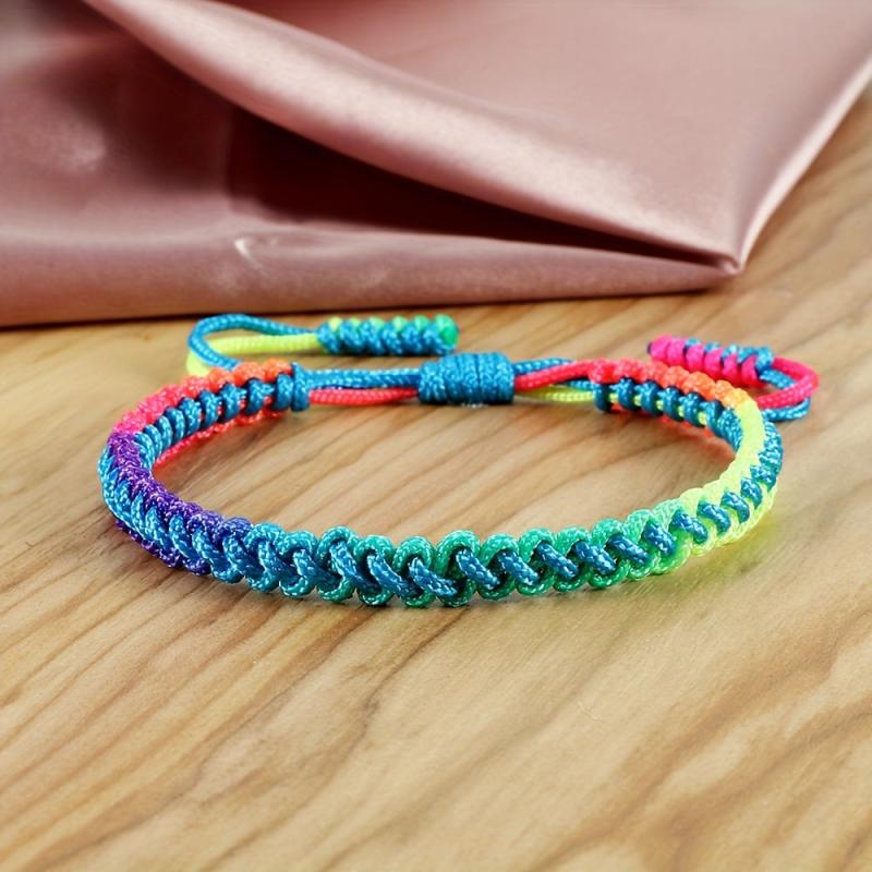 This handwoven braided bracelet features a boho rainbow gradient design that is adjustable for a perfect fit. It is a versatile accessory that can be worn all season and makes a great gift for casual attire.