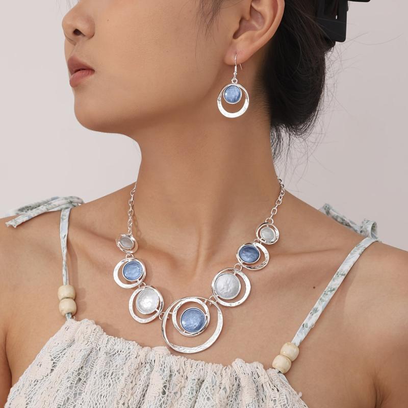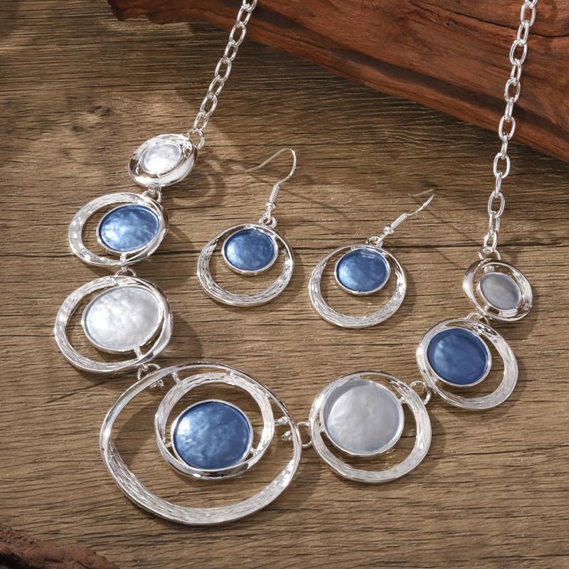 Treat your mom to this stunning jewelry set made of zinc alloy. It includes a pair of earrings and a necklace featuring round designs.