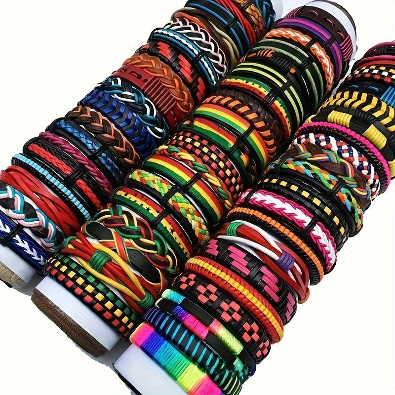 Add a touch of retro style with these colorful faux leather bracelets. Perfect for parties or as a gift for men.