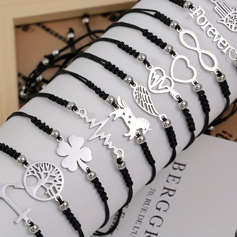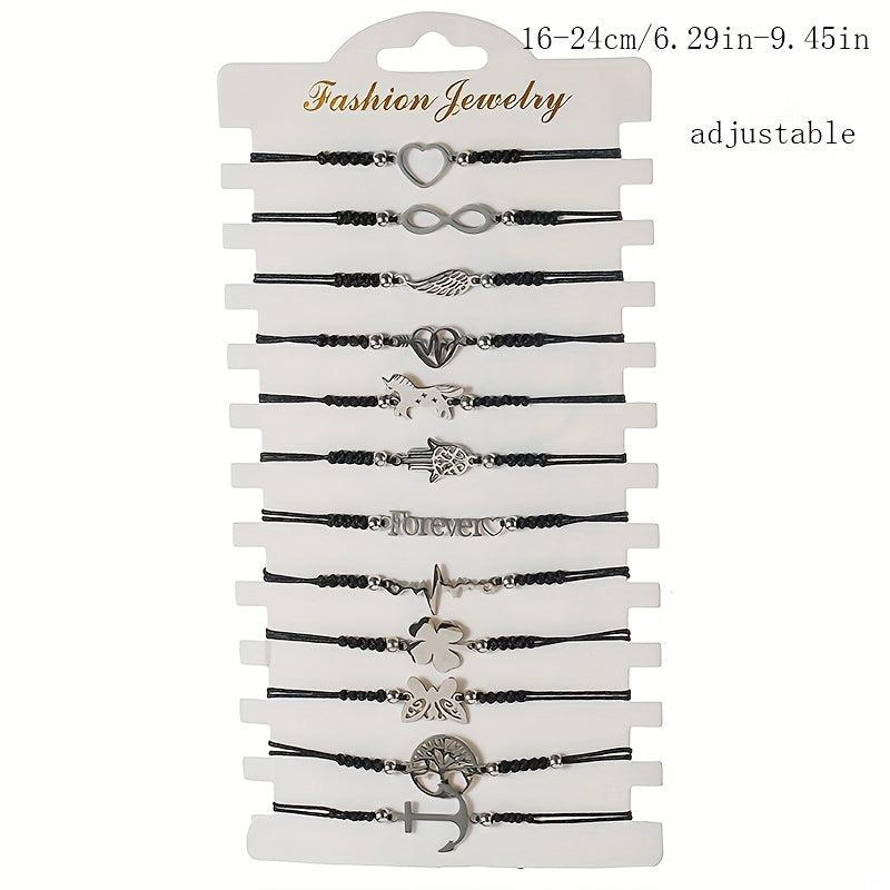 • 12pcs set of stainless steel pendant braided charm bracelets
