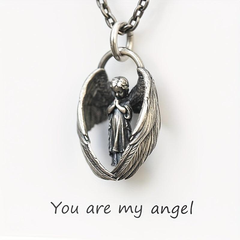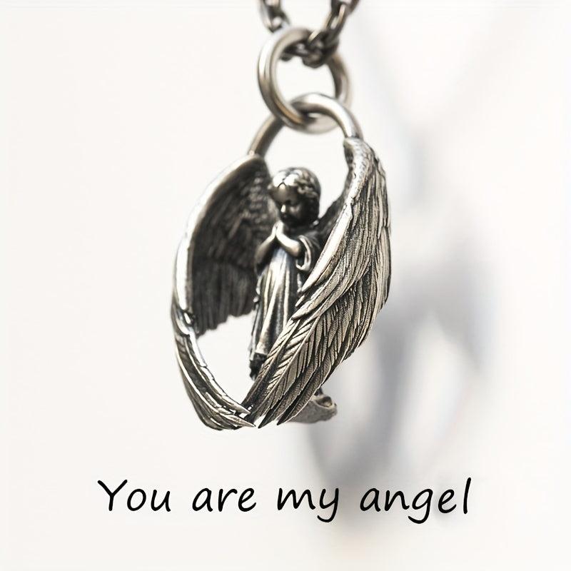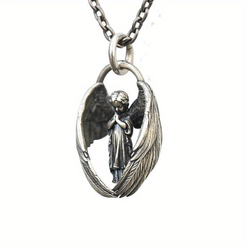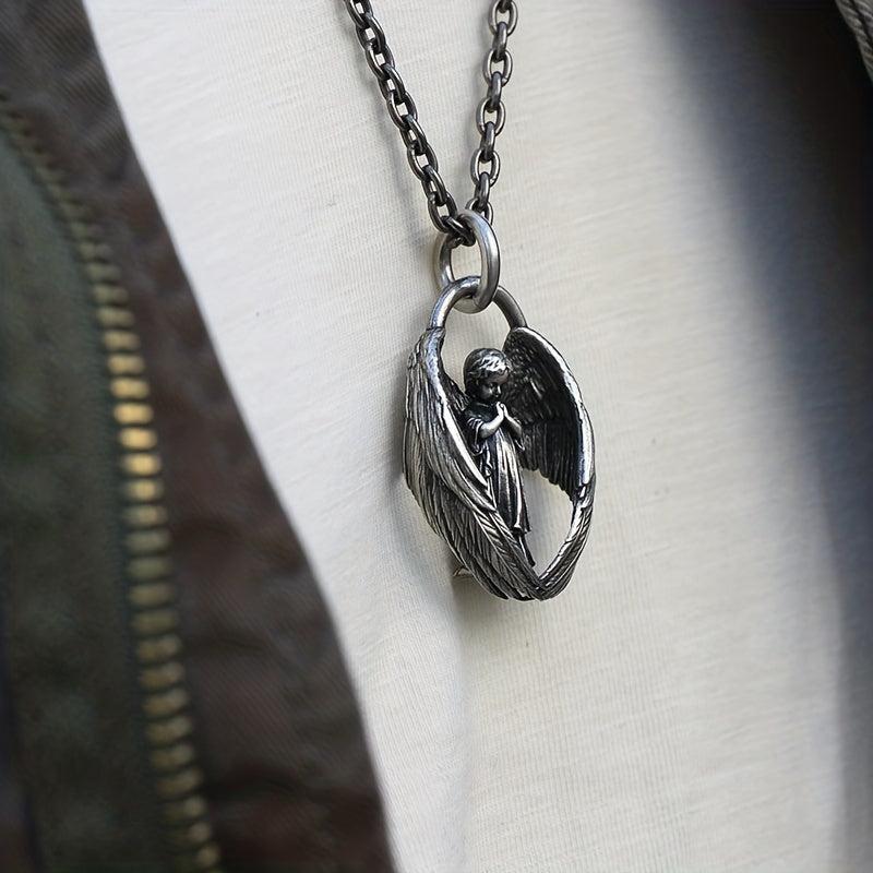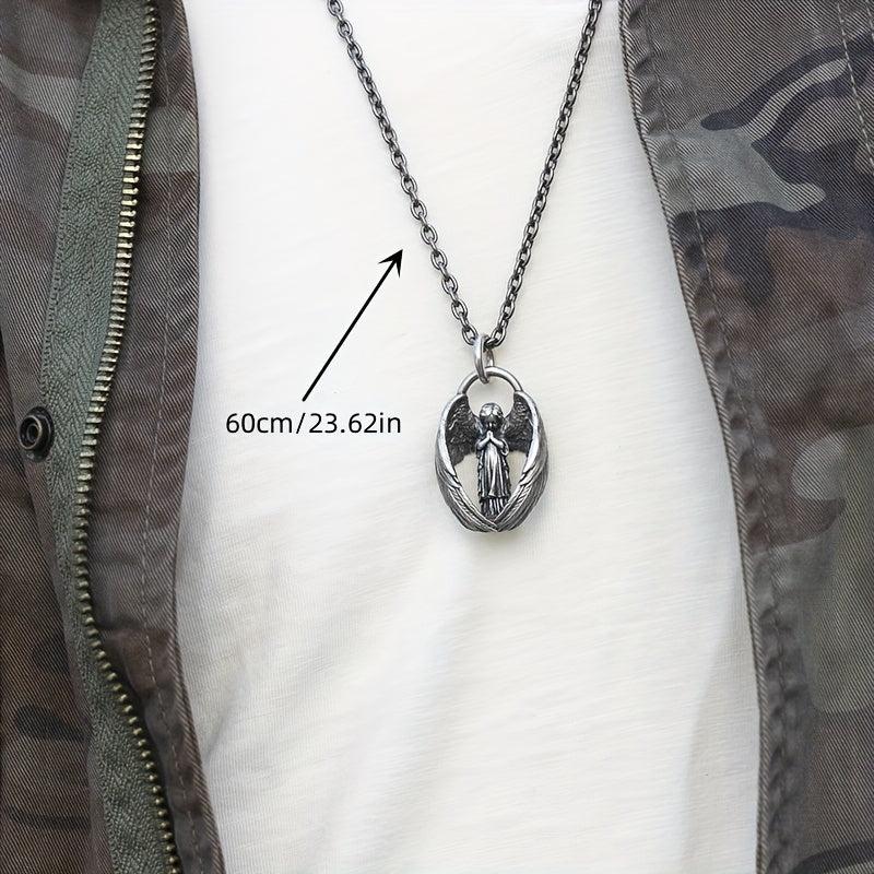 This classic Blessing Angel pendant necklace is a stylish accessory for men. It features a Lucky Angel design that adds a touch of hip hop and punk flair to your look.