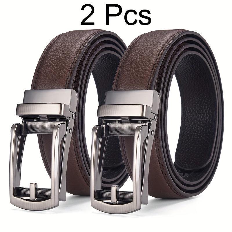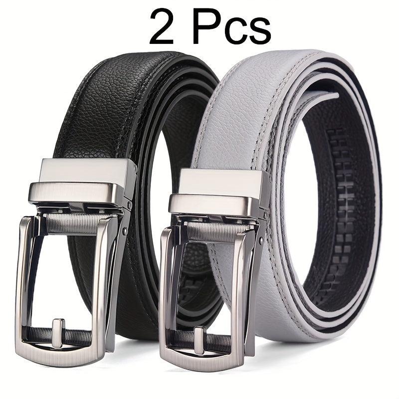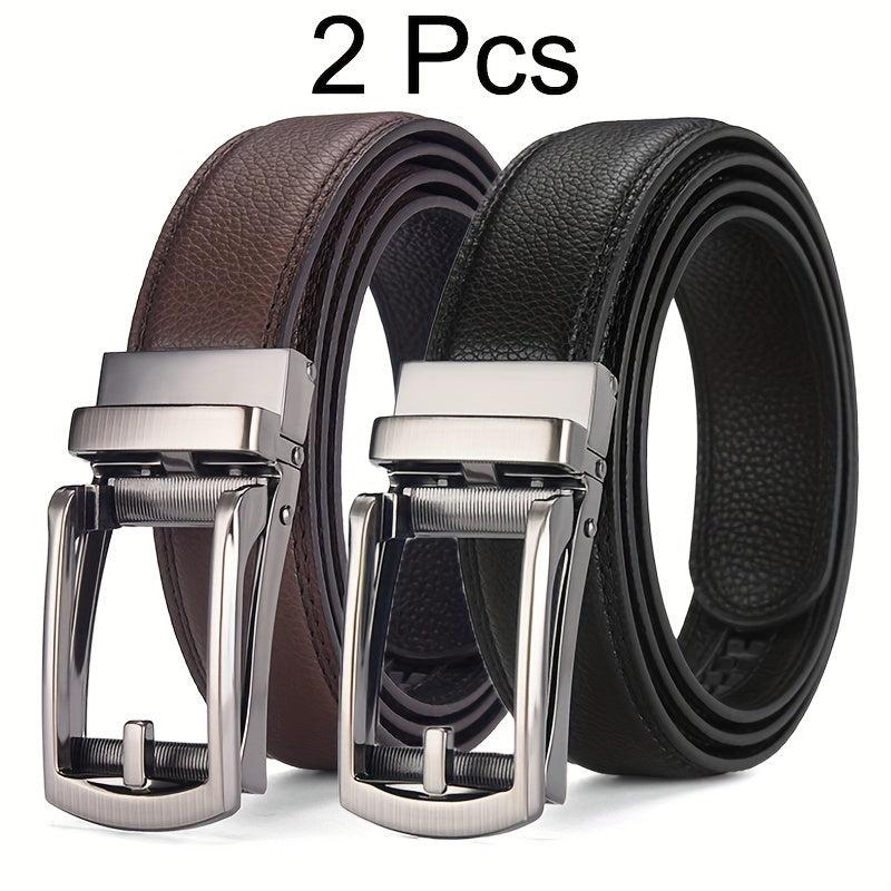 Elevate your style with this 2 pack of men's business belts. Made from embossed PU leather and featuring automatic alloy buckles, these belts are perfect for both casual and dress pants.