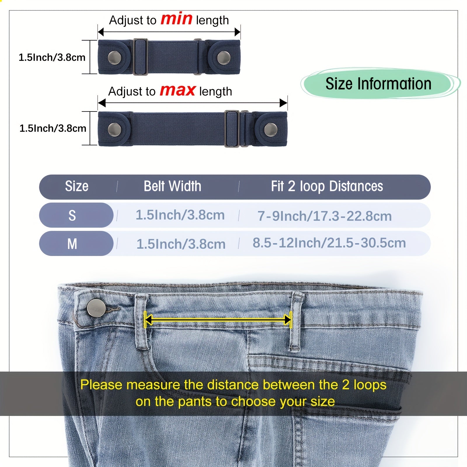 This set includes 2 invisible pants adjusters with snap and magic sticker for easy and comfortable use. The elastic band ensures a perfect fit.