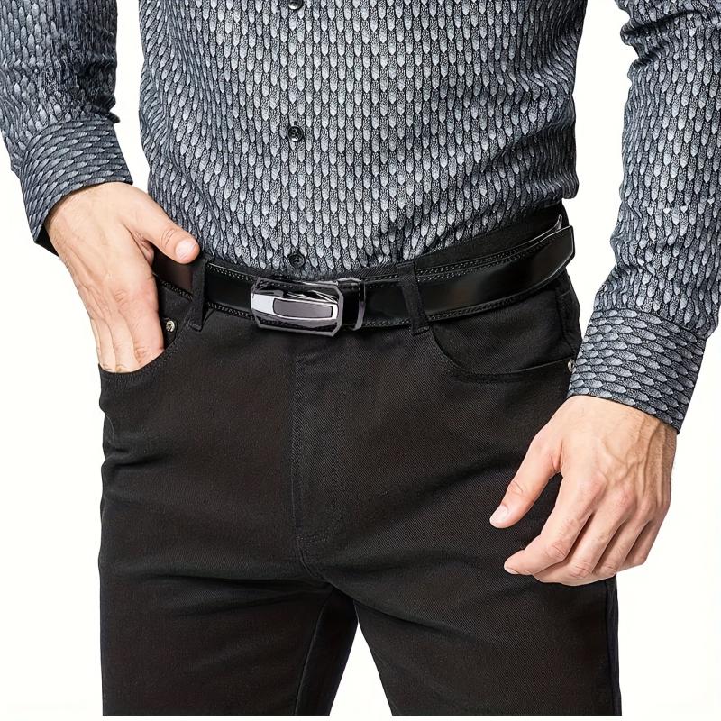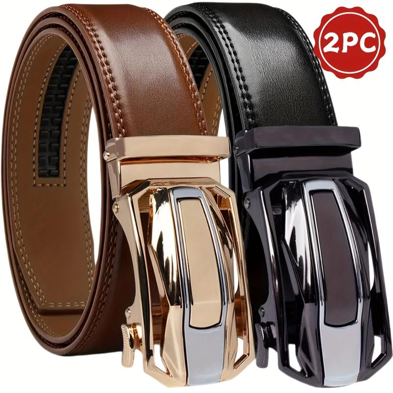 Upgrade your belt game with this set of 2 stylish men's faux leather belts. The golden automatic buckle adds a touch of sophistication, perfect for both casual and formal occasions. Ideal gift for Father's Day or Valentine's Day.